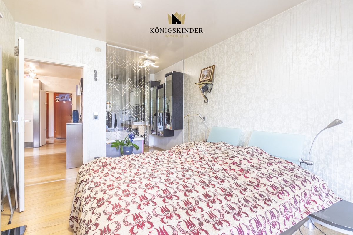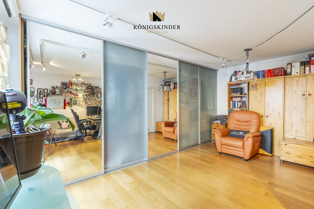 Interessant ist der Grundriss der Wohnung, der eine räumliche Trennung in einen Bereich mit zwei Zimmern und einem separaten Appartement ermöglicht.