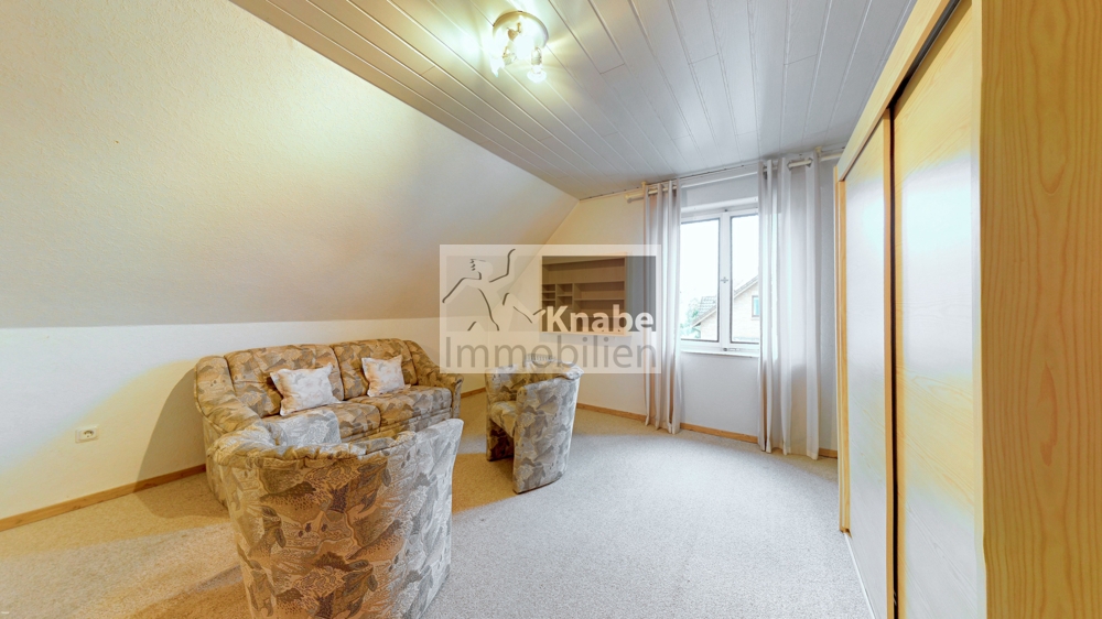 Zudem bietet der Dachboden eine Ausbaureserve, die zusätzlichen Platz für ein weiteres Schlafzimmer, ein Büro oder ein Hobbyzimmer schafft. Garage und Carport komplettieren das Angebot.