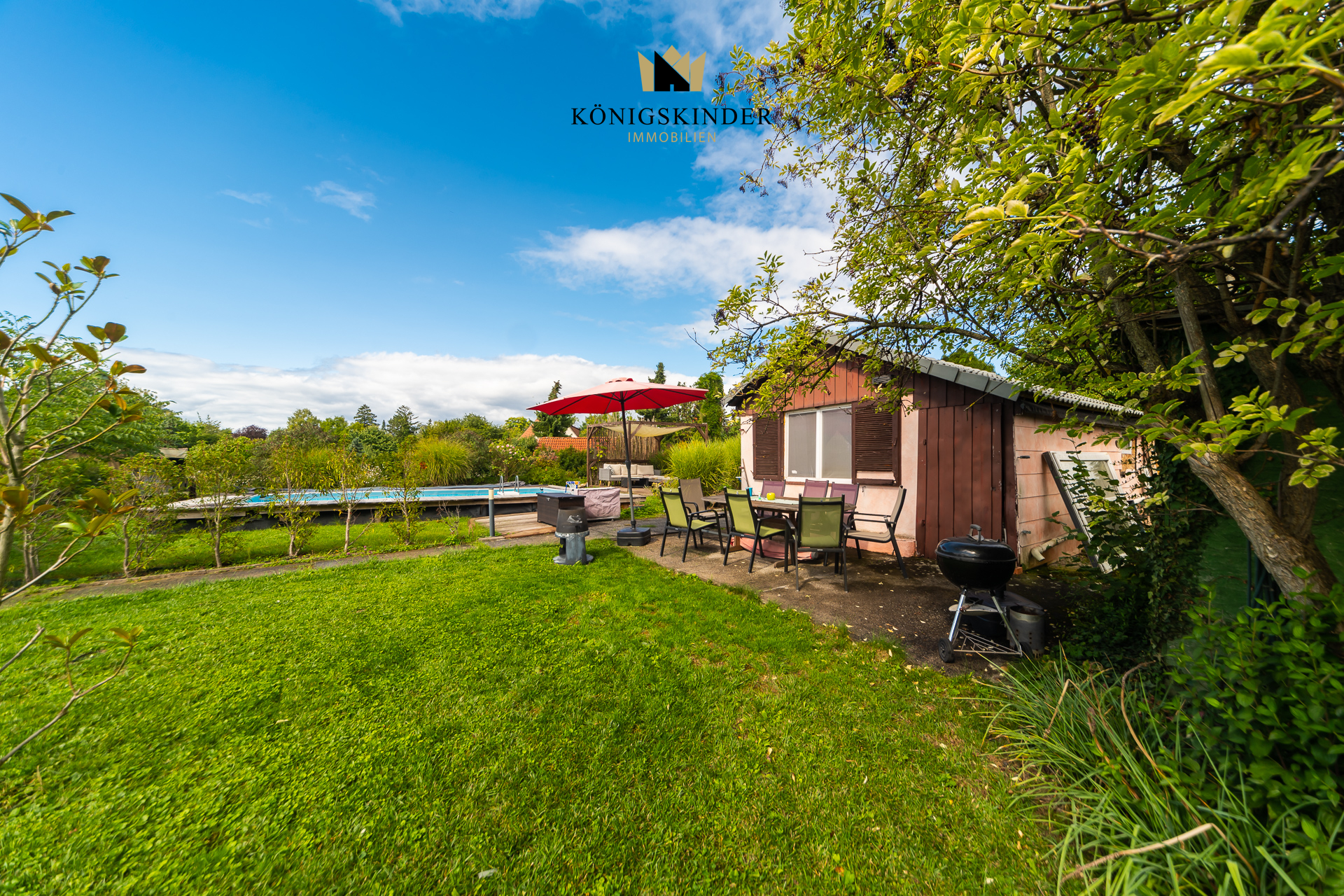 Dieses idyllische Freizeitgrundstück bietet die perfekte Kombination aus Erholung, Naturverbundenheit und Freizeitspaß. Eingebettet in eine grüne Umgebung, lädt das Grundstück sowohl zum Entspannen als auch zur aktiven Freizeitgestaltung ein. Schon beim Betreten des Grundstücks umfängt Sie die ruhige und angenehme Atmosphäre. Das Highlight ist der großzügige Pool mit Lounge, der perfekte Platz, um an heißen Sommertagen ins kühle Nass zu springen oder mit Freunden entspannt den Sonnenuntergang zu genießen. Ein charmantes Gartenhaus mit zwei Zimmern und eigenem WC lädt zum Verweilen ein. Ob als kreativer Rückzugsort oder gemütliches Domizil für die Nacht, hier finden Sie Platz für all Ihre Ideen. Auf der Terrasse können Sie die Sonnenstrahlen mit einem Glas Wein genießen, während die Kinder auf dem Trampolin herumtollen. Und wenn Freunde zu Besuch kommen, wird gegrillt, gelacht und gelebt. Für Naturliebhaber gibt es Gemüse- und Erdbeerbeete, die frische Ernte direkt vor der Haustür ermöglichen. Ein Stück Selbstversorgung und Naturverbundenheit inmitten Ihres eigenen Gartens. Dank Strom- und Wasseranschluss ist für Komfort gesorgt, sodass Sie sich ganz auf die schönen Dinge konzentrieren können. Ob als Wochenenddomizil, Rückzugsort für die Familie oder kreativer Freizeitgarten, dieses Grundstück lässt keine Wünsche offen. Hier verbinden sich Natur, Erholung und Lebensfreude auf einzigartige Weise. Perfekt, um den Alltag hinter sich zu lassen und neue Energie zu tanken.