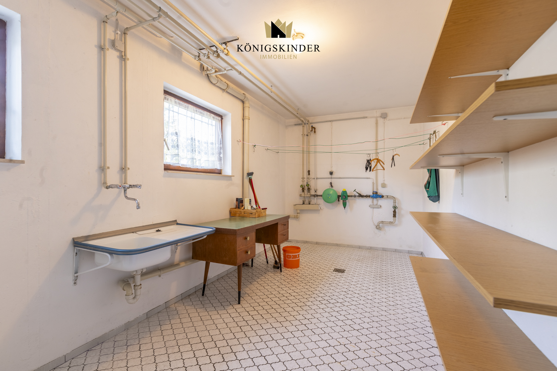 Dann finden Sie im Untergeschoss noch einen Wasch- u. Trockenraum, einen Vorratsraum, einen Hobby- bzw. Abstellraum, sowie den Heizungsraum mit angrenzendem Öltankraum. Vom Hobby- bzw. Abstellraum aus können Sie auf die ebenfalls nach Südwesten ausgerichtete Terrasse und in den tollen Garten gehen.