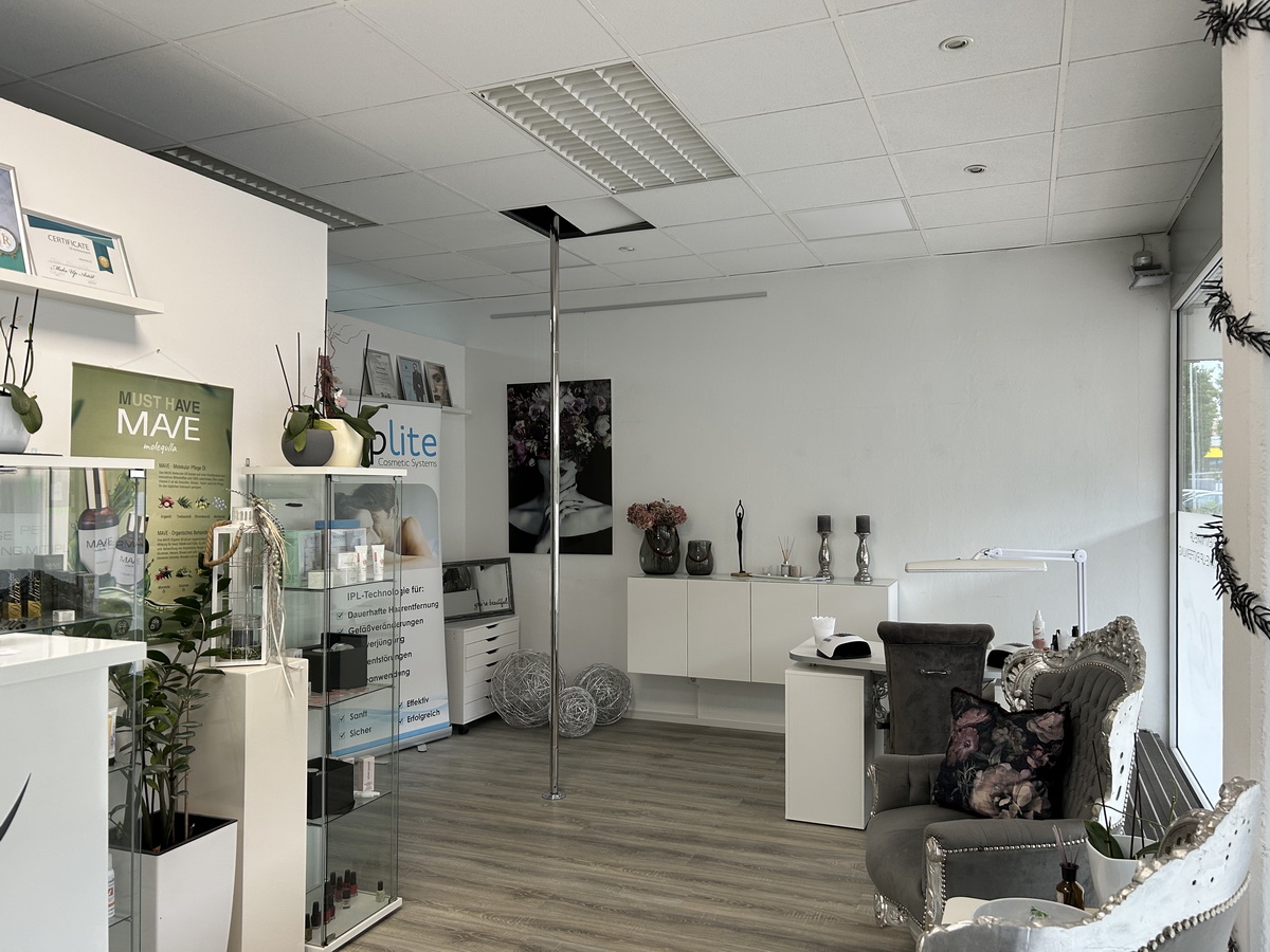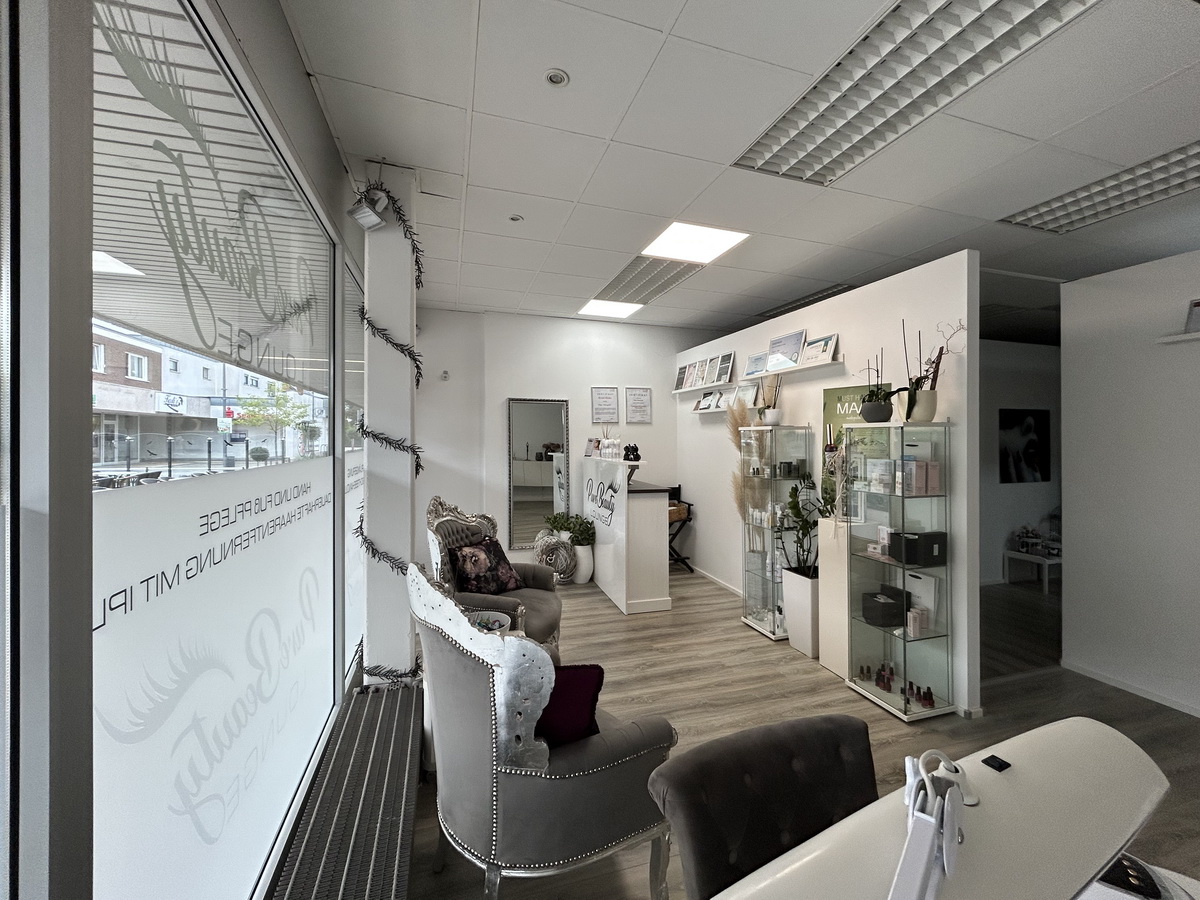 Der Laden im Erdgeschoss (Pure Beauty Lounge) hat rd. 85 m² Mietfläche zzgl. großzügigen Lagerflächen von rd. 74 m² im Keller.