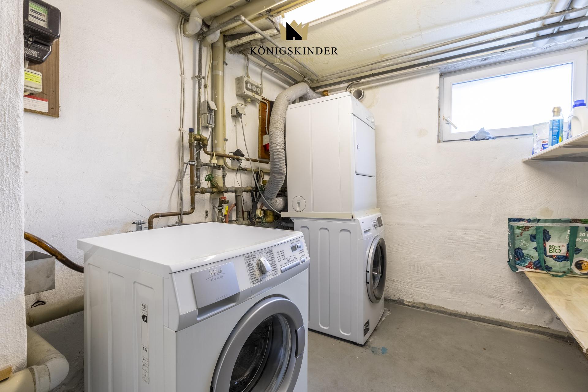 Im Kellerbereich stehen zwei großzügige Kellerräume, ein Wäscheraum / Hauswirtschaftsraum, ein Keller-WC und zusätzliche Stauraummöglichkeiten zur Verfügung. Die Garage ist geräumig und bietet neben Fahrzeugen weiteren Stauraum.