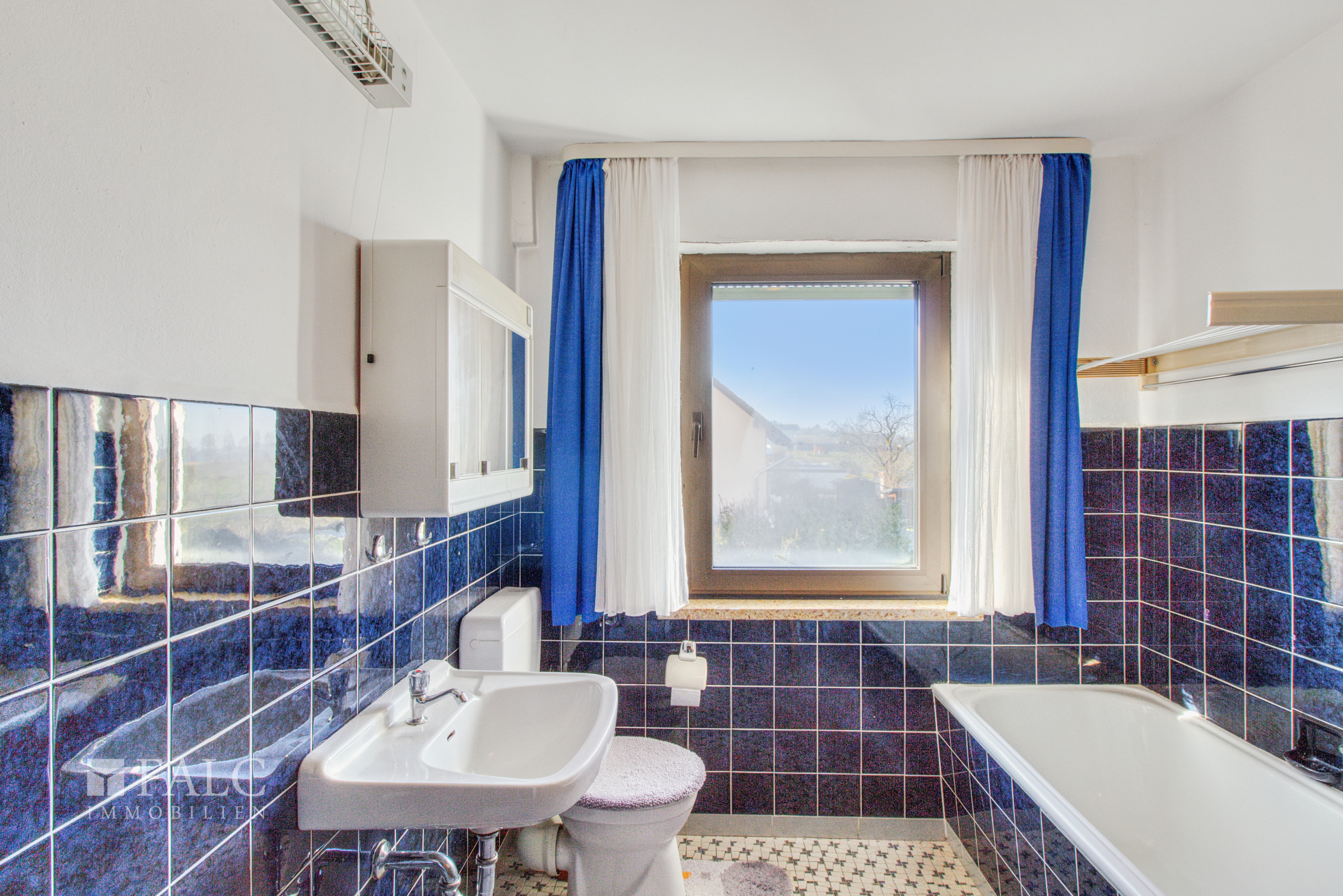 Ein Stockwerk höher, im Obergeschoss, finden Sie Rückzugsmöglichkeiten für die ganze Familie. Das Schlafzimmer ist großzügig geschnitten und sorgt für eine angenehme Atmosphäre. Drei weitere Zimmer lassen sich hervorragend als Kinder- oder Gästezimmer nutzen. Hier gibt es zudem ein Badezimmer mit Badewanne, das für den entspannten Start in den Tag sorgt.