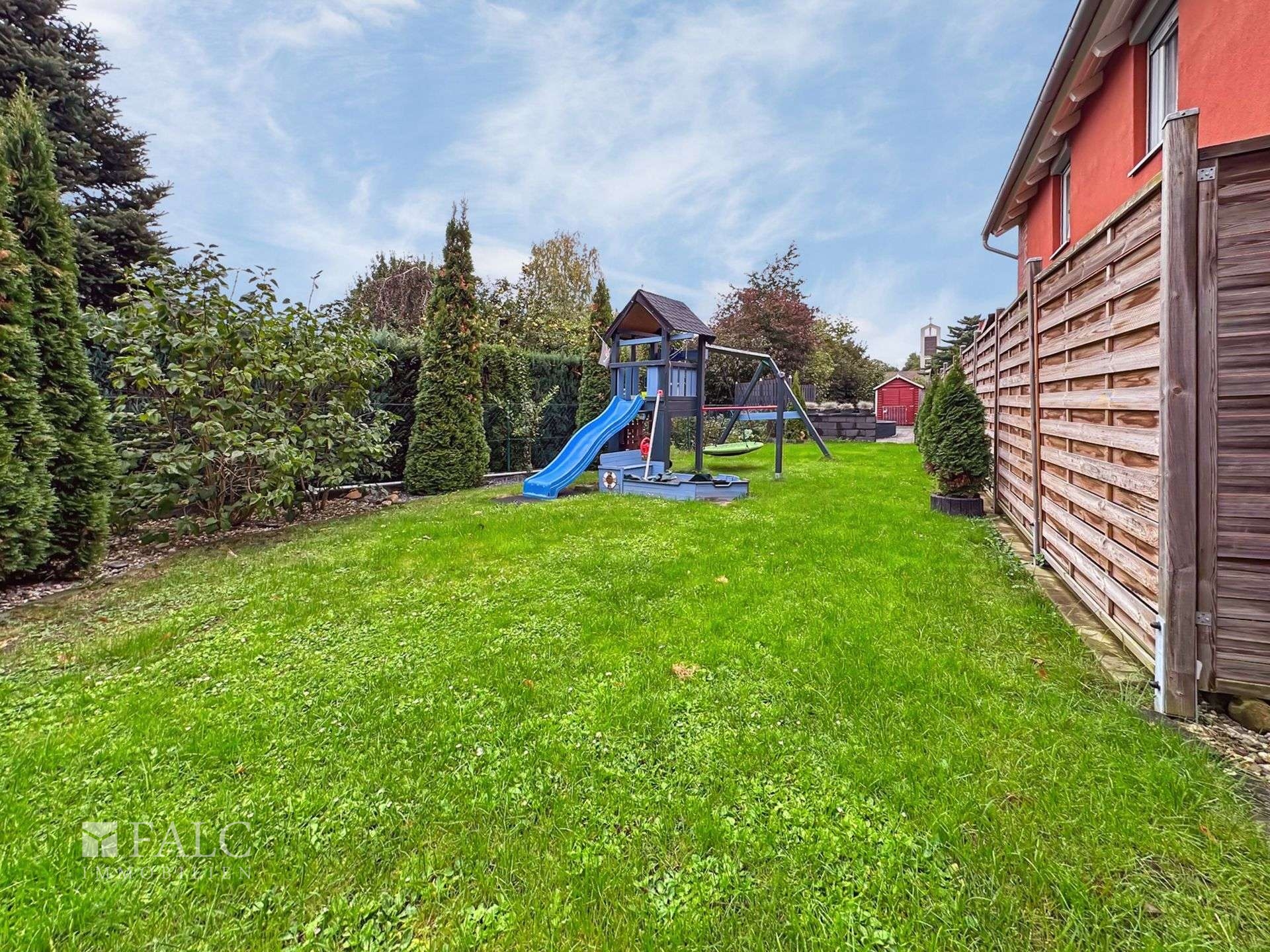 Das dazugehörige Grundstück umfasst eine Fläche von 558 Quadratmetern. Es bietet genügend Platz für einen gepflegten Garten, der zum Spielen, Entspannen und Gärtnern genutzt werden kann. Ein kleines Gartenparadies, das zu jeder Jahreszeit Freude bereitet. Ein teileingelassener Rundpool mit einem Durchmesser von 3,5m und einer Tiefe von 1,5m wurde in den letzten Jahren integriert.