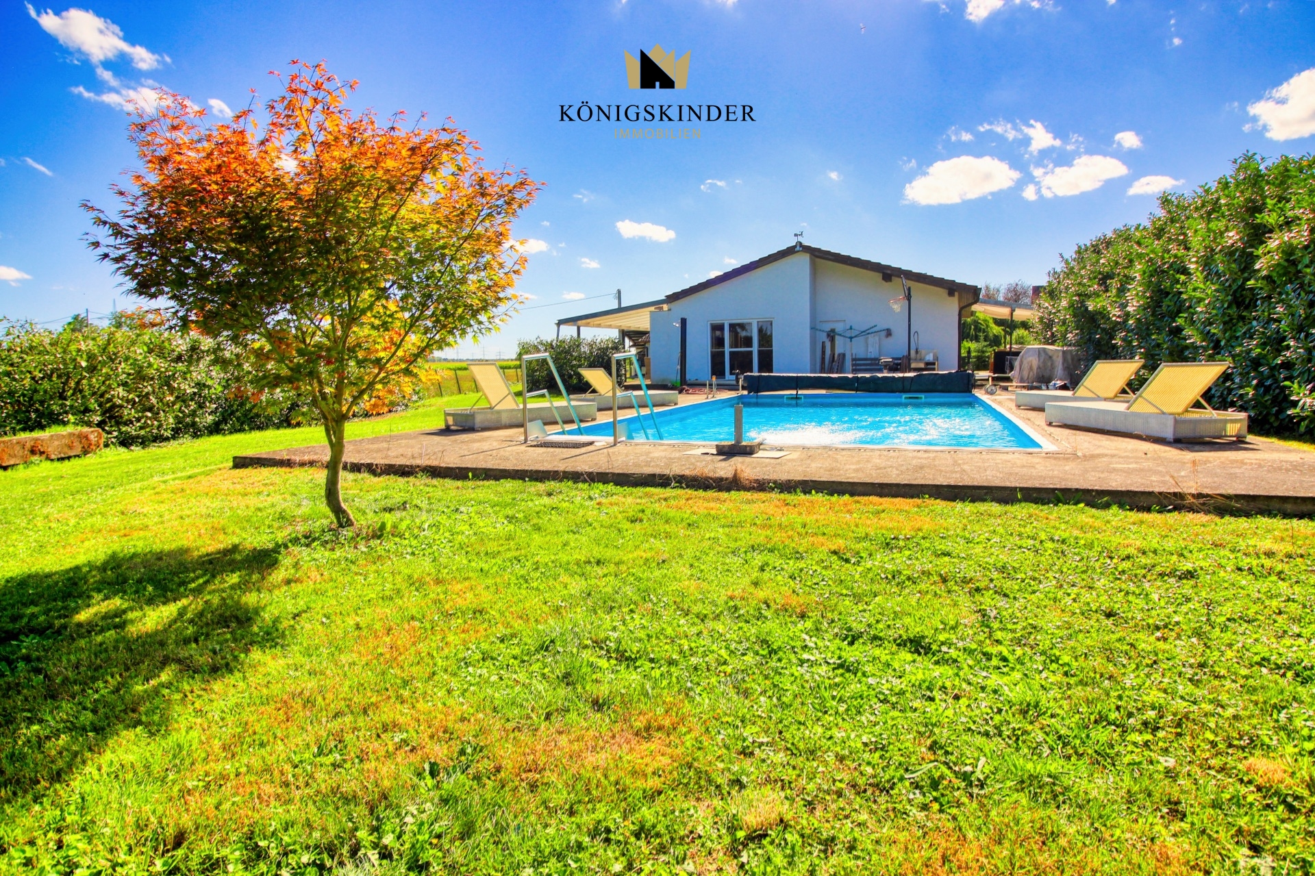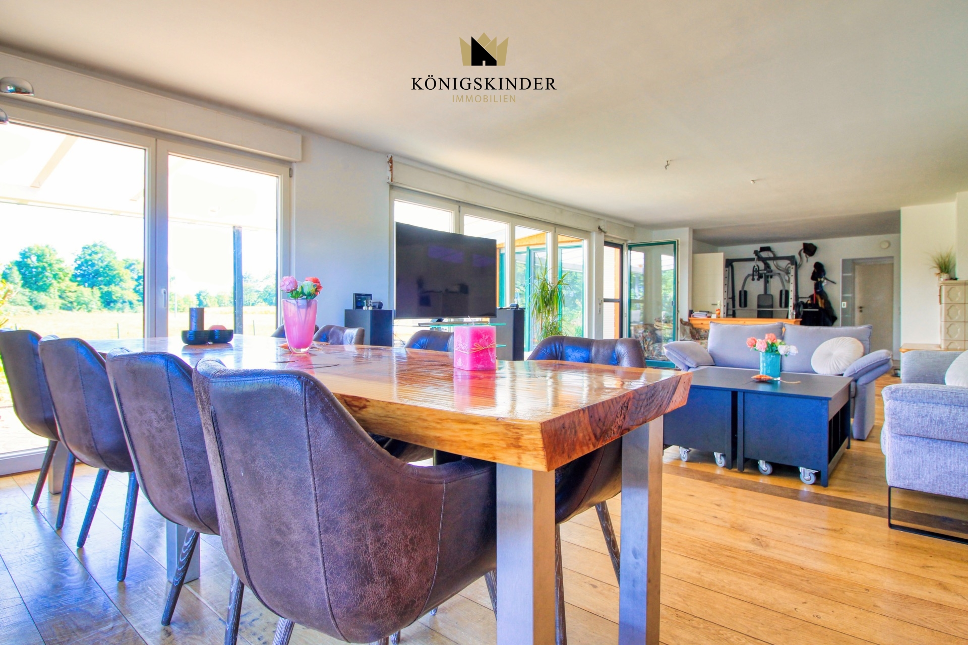 Vielleicht suchen Sie keinen gewöhnlichen Ort zum Wohnen, sondern ein Zuhause, das Freiheit schenkt, Raum zum Arbeiten lässt und gleichzeitig Geborgenheit für Ihre Familie schafft. In Rheinau-Hausgereut wartet genau solch ein Ort: ein Bungalow am Feldrand – mit weitem Blick über Wiesen, Felder und auf den Schwarzwald, begleitet von einem Bachlauf, der das Grundstück sanft touchiert.