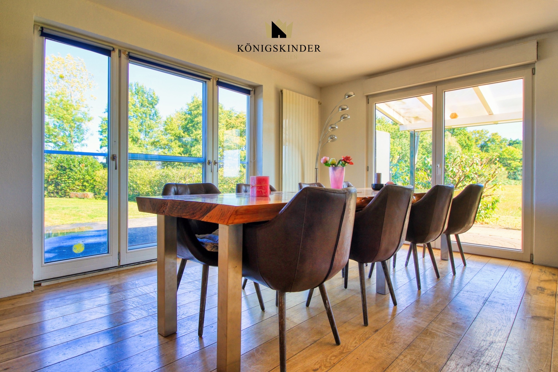Wer im Homeoffice arbeitet, findet hier Ruhe und Klarheit. Großzügiger, unverbauter Raum bietet Platz für Kreativität. Mit überschaubarem Aufwand kann die Immobilie auch in zwei separate Wohneinheiten aufgeteilt oder – ideal für Selbständige – in Wohn- und Arbeitsbereich kombiniert werden. Der Glasfaseranschluss verbindet Sie dabei digital mit der Welt. Kinder genießen Freiraum und Sicherheit, während man in der 100 m² großen Garage und dem überdachten Gerätestellplatz Projekte und Träume verwirklichen. Zuzüglich kommen 200m² Außenstellfläche hinzu.