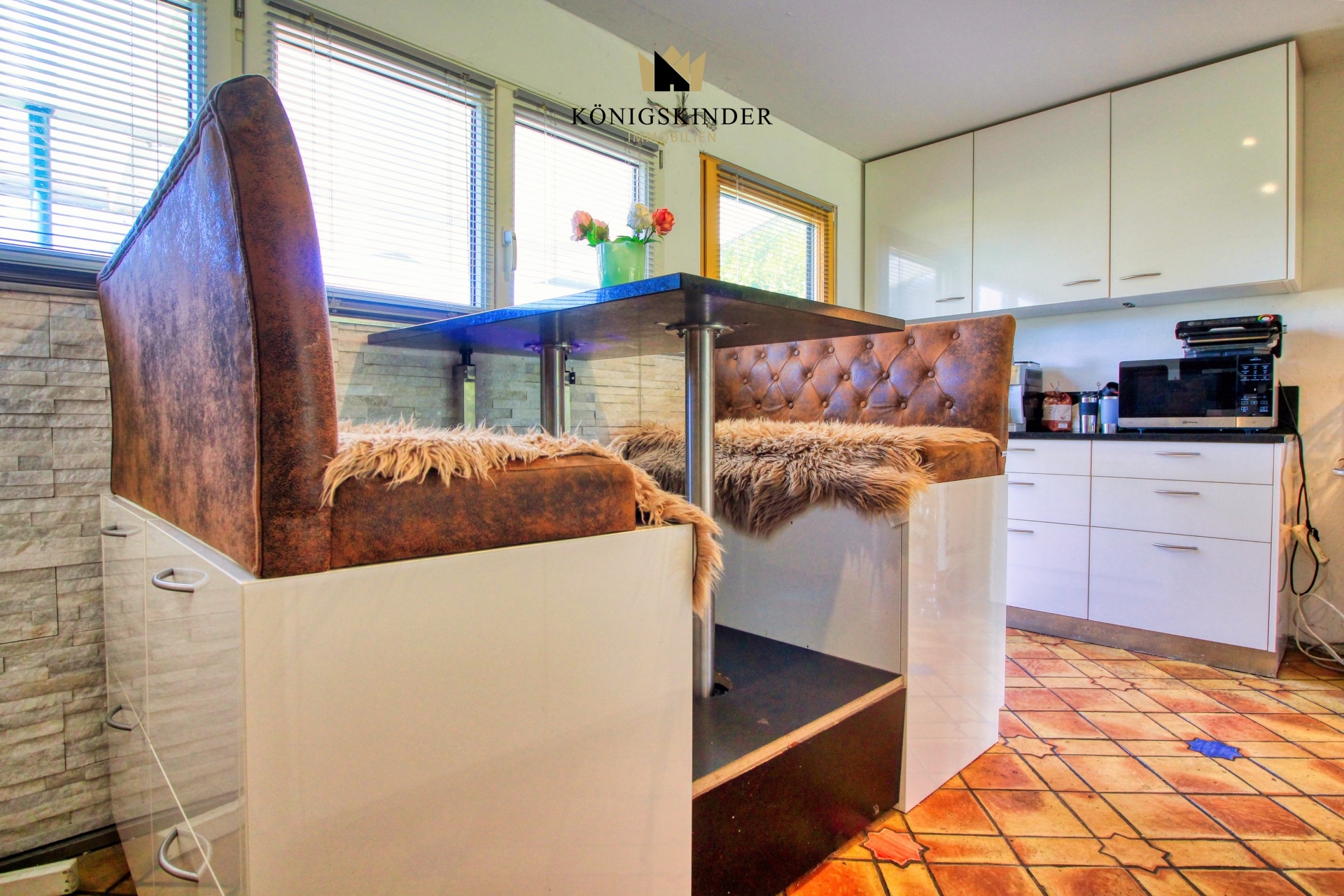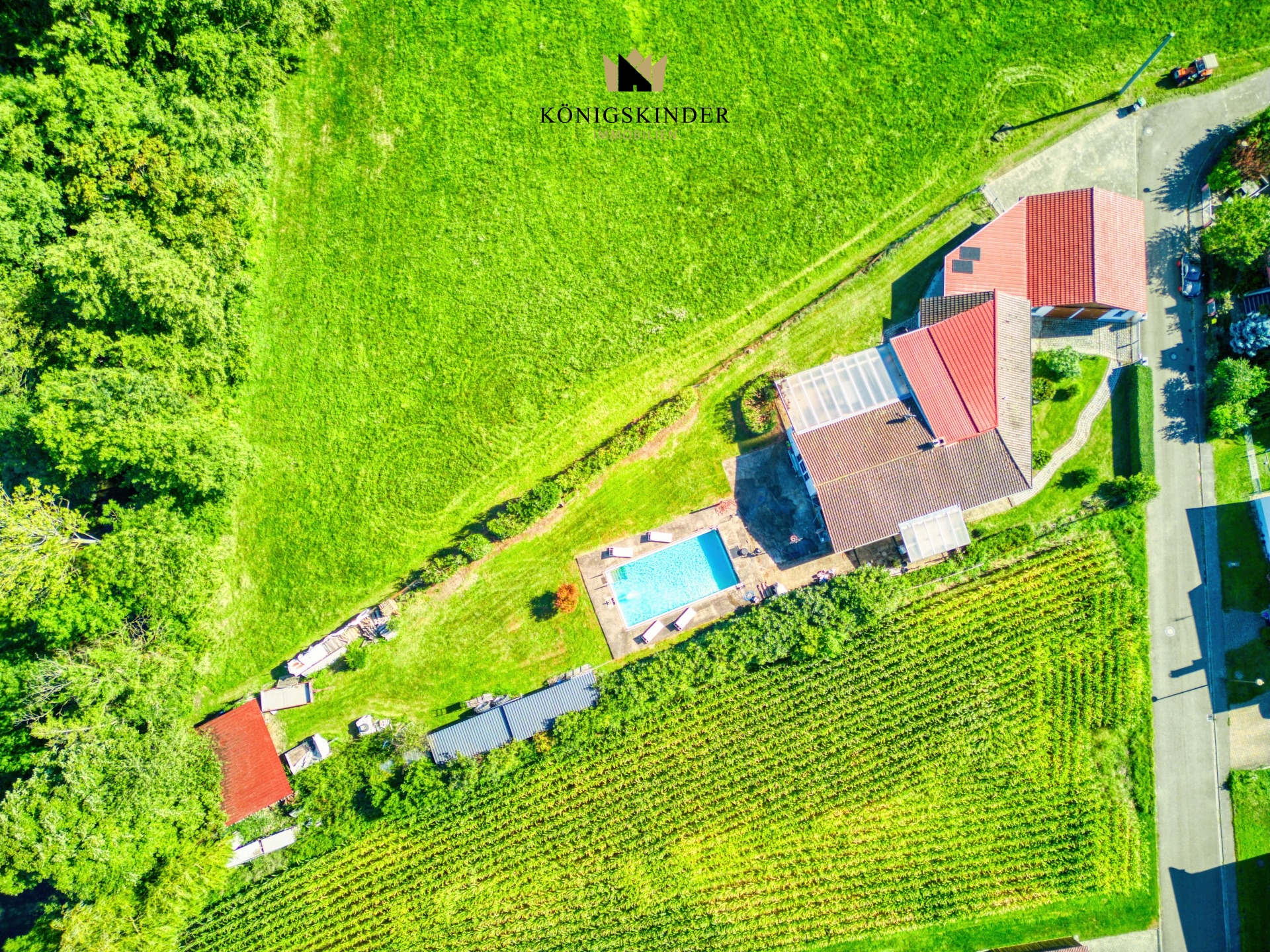 5 Zimmer Sehr ruhige Wohnlage Teilbar in zwei Wohneinheiten Wohnraumerweiterung um 60m² genehmigt 2 Bäder, eines modernisiert 2023, eines entkernt zu Modernisierung, 1 Gäste-WC Voll unterkellert Outdoor Pool Hochwertige Einbauküche Pelletheizung 3 Terrassen Kachelofen für Holzscheitel Stellplatz im Freien für vier PKWs Garage für vier PKW, plus obere Etage und Grube Glasfaseranschluss liegt an