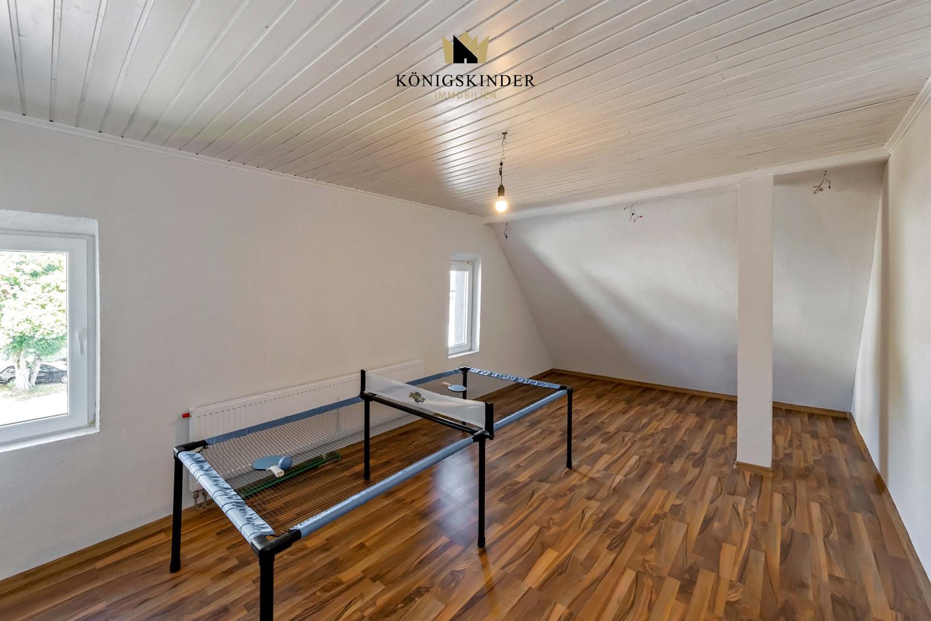 Im ersten Obergeschoss sind drei Schlafzimmer und das Bad mit Badpool. Die Galerie auf dieser Etage ermöglicht noch zusätzlich Platz für Ihre Ideen. Von hier gelangen Sie auf den ca. 38 m² großen Balkon und können den Blick auf die wunderschöne Landschaft genießen. Im zweiten Obergeschoss, dem Dachgeschoss, sind nochmals zwei geräumige Zimmer. Vielleicht Schlafzimmer, Hobbyzimmer, Büro. Des Weiteren könnte im Dachgeschoss noch weiterer Wohnraum geschaffen werden. Vielleicht benötigen Sie auch nur eine Abstellfläche.