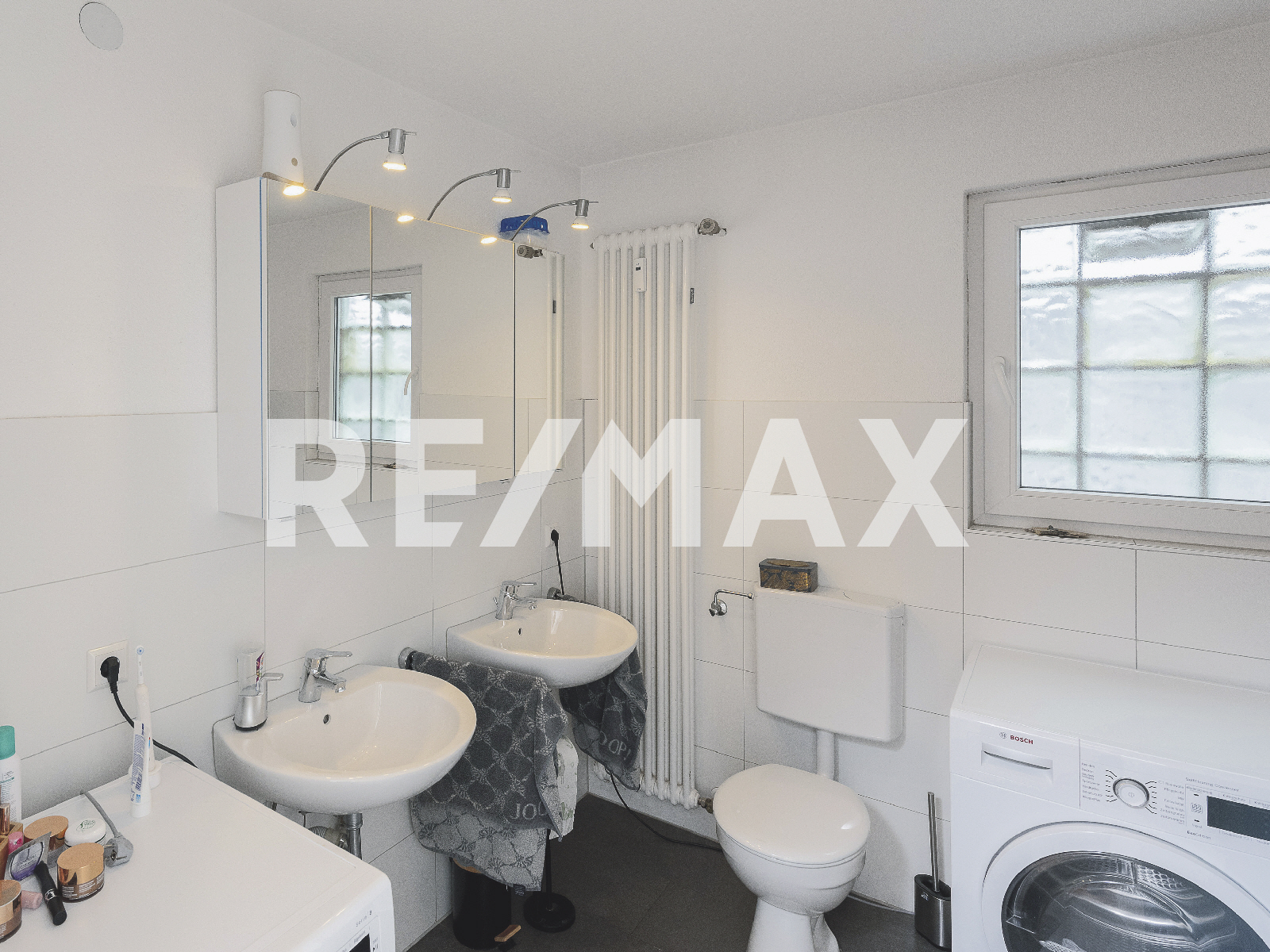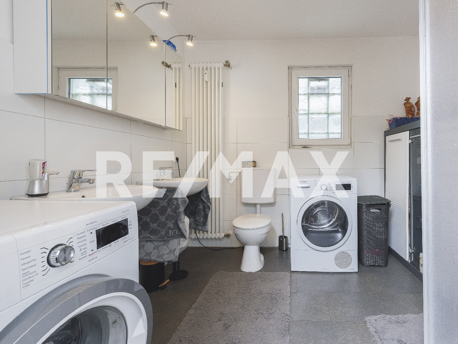 * Bad mit WC, Waschbecken, Waschmaschinenanschluss und einer Badewanne