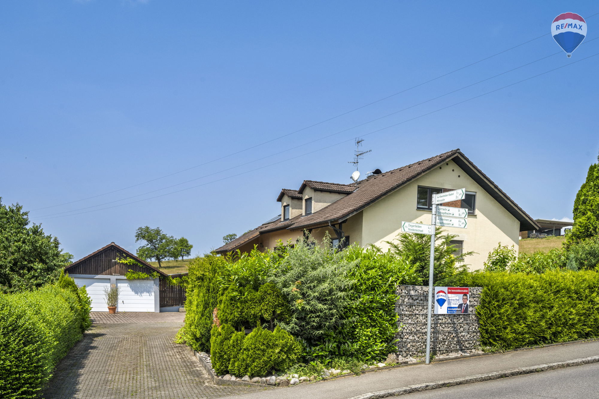 Auf dem großzügigen 1.050 m² Grundstück erwartet Sie ein liebevoll gestalteter Gemüse- und Grüngarten. Für Ihre Fahrzeuge stehen drei Garagen zur Verfügung. Balkone und Terrassen bieten zusätzlichen Freiraum für Erholung und Genuss.