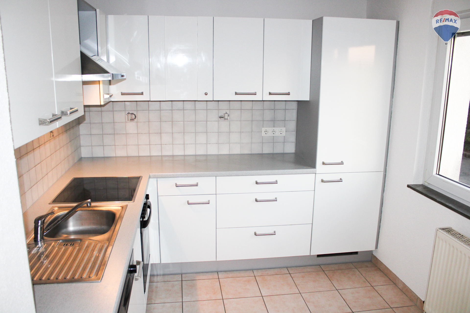 Das Küchenzimmer ist mit einer Einbauküche mit Elektrogeräten, Fliesenboden und Fenster mit Rollläden ausgestattet. Die schicke Einbauküche verfügt über alles, was Sie brauchen und kann durch die Fenster gelüftet werden.