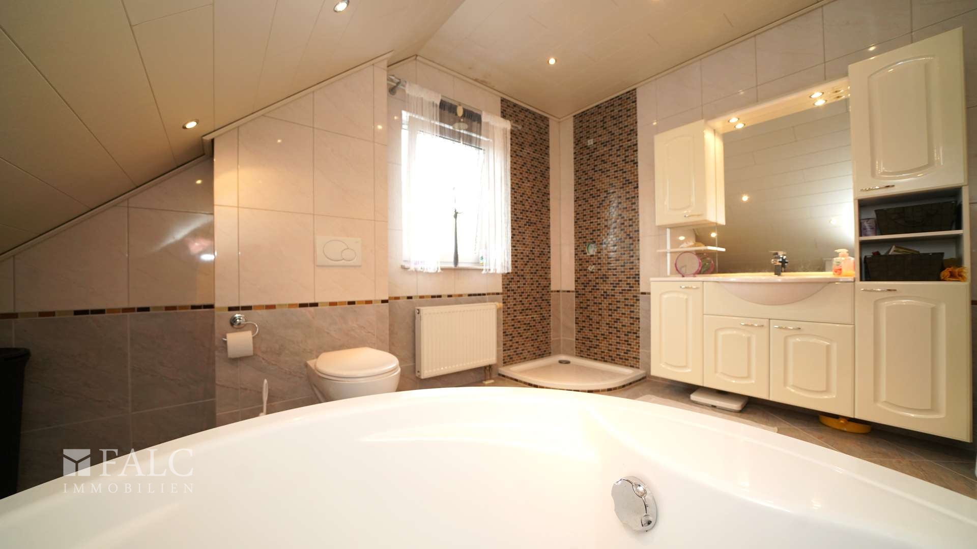 Stressfrei in den Tag starten? Das Badezimmer mit Tageslicht wartet, von Ihnen erobert zu werden. Ausgestattet mit Bad und Dusche, kommt man sich bestimmt nicht mehr in die Quere. Bei einem heißen Bad die Seele baumeln lassen oder lieber unter der bodenebenen Dusche eine Abkühlung genießen? Hier ist für jedermann etwas dabei! Ihre Waschmaschine und der Trockner finden hier oder in der Waschküche des Souterrains eine Heimat.