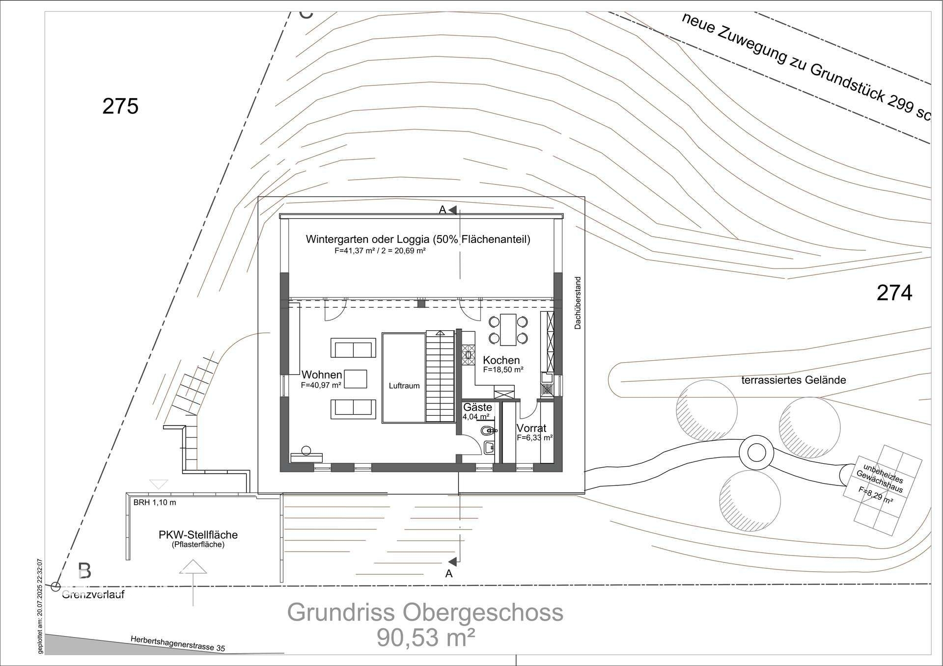 Auf dem oberen Grundstück befindet sich derzeit ein Containerhaus, das abgerissen und vollständig entsorgt wird. Die bestehende Bodenplatte bleibt erhalten und bildet die Basis für den Neubau eines geschlossenen Rohbaus, der bereits geplant und genehmigt ist.