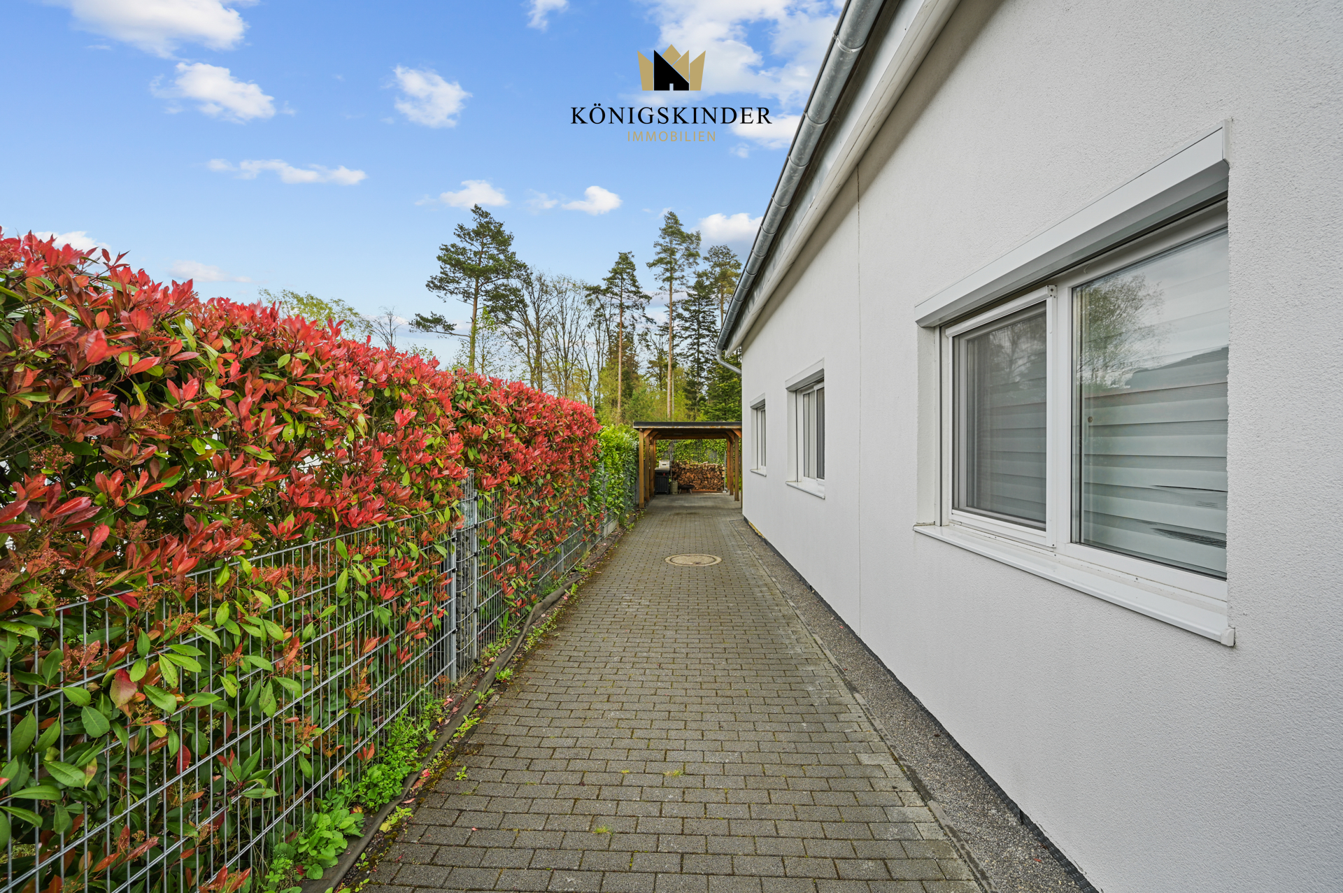 Die hochwertige Ausstattung und die Verwendung von erstklassigen Materialien garantieren eine hohe Lebensqualität. Die überdachte Terrasse lädt zum Verweilen ein und schafft zusätzlichen Raum im Freien. In der großzügigen Einbauküche lässt sich gemeinsam kochen und genießen. Ein Carport für ein Auto bietet praktischen Stellplatzschutz.