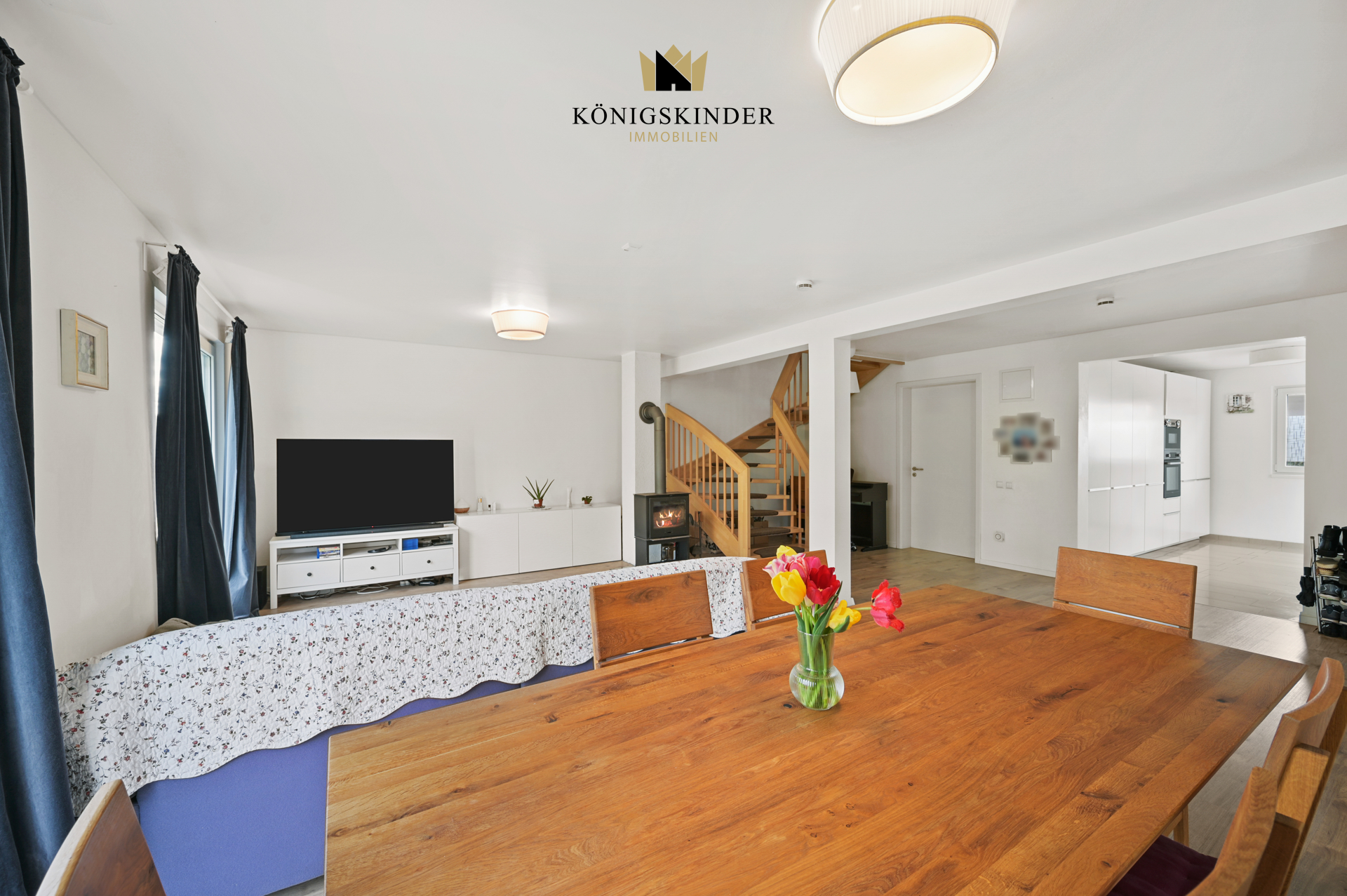 Die Doppelhaushälfte überzeugt mit einer hochwertigen, modernen Ausstattung und durchdachter Raumaufteilung. Der offene Wohn-Ess-Bereich bildet das Herzstück des Hauses und wird durch einen gemütlichen Kamin ergänzt. Die großen dreifachverglasten Fenster sorgen für lichtdurchflutete Räume und tragen in Kombination mit der Holzständerbauweise und dem niedrigen Energiebedarf zu einem angenehmen Wohnklima bei.