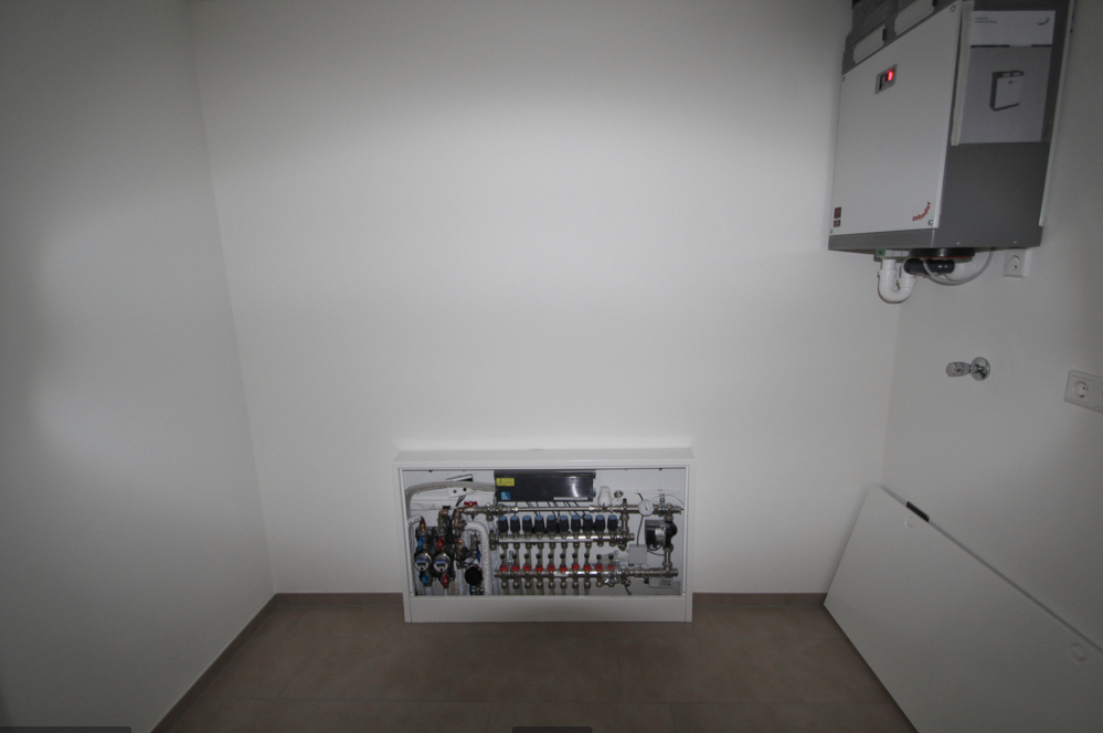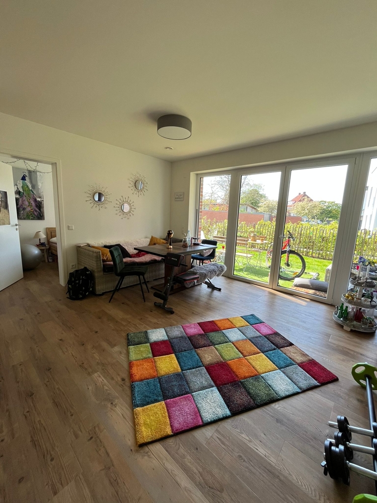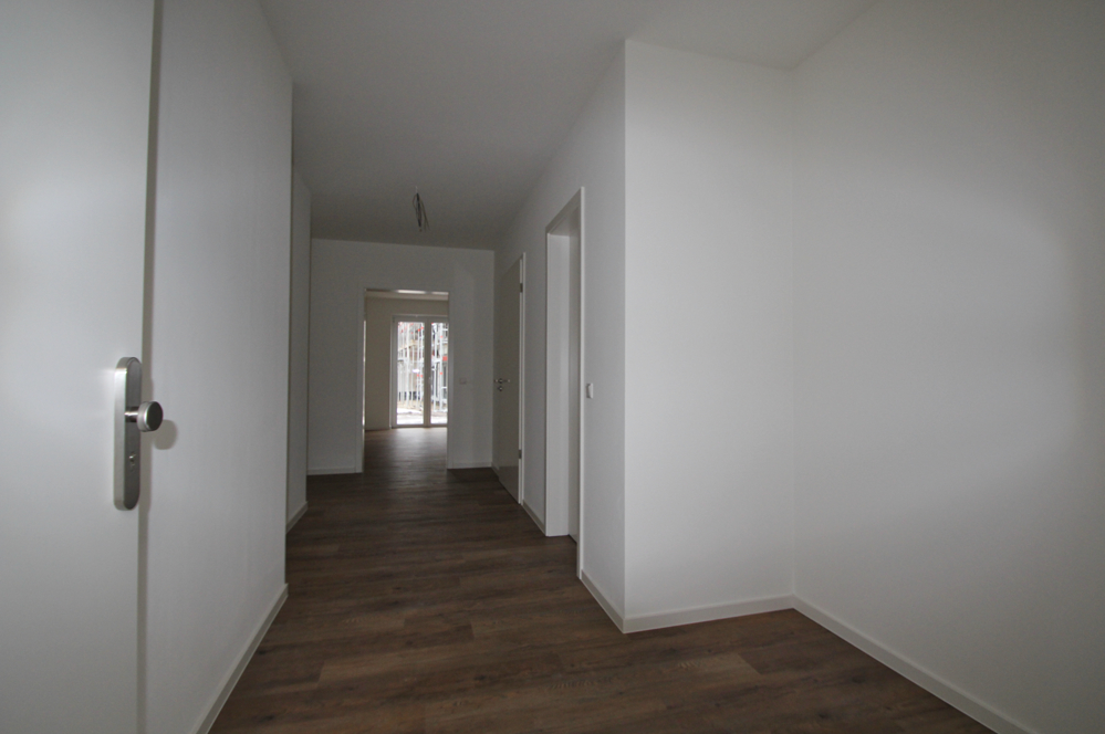 Allgemeines: - Kunststofffenster mit 3-fach Verglasung: Wärmeschutzglas gemäß Wärmeschutznachweis - Rollladenmotoren bei den Fenstern mit einer Breite ab 2 m. - Innentüren weißlack EPC (Breite 98,5 cm außer Gäste WC) - Innentür zwischen Wohnzimmer und Flur erhält ein geschlossenes Türblatt mit einem Glasseitenteil (Breite 98,5 cm). - Fußbodenheizung, die einzeln regelbar ist. - Kontr. Wohnraumlüftung mit Wärmerückgewinnung - Wände der Wohnung: Glattvliestapete weiß