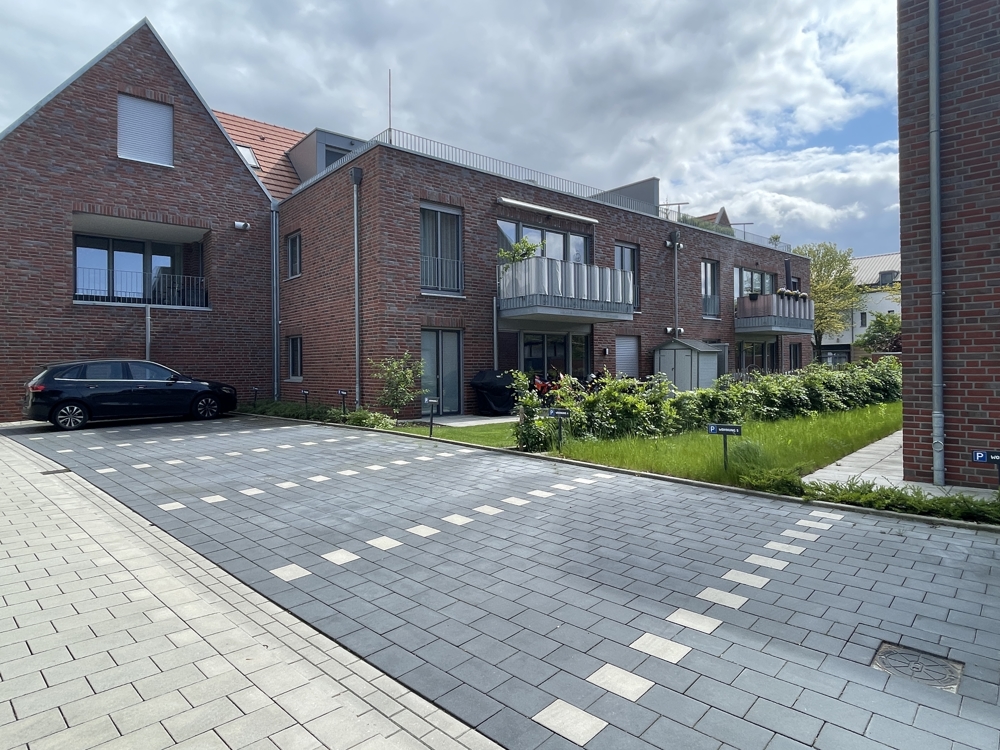 Darüber hinaus steht ein gemeinschaftlicher Fahrradraum mit jeweils einer eigenen Steckdose je Wohnung für E-Bikes sowie ein separater, nummerierter Abstellraum außerhalb der Wohnung zur Verfügung.