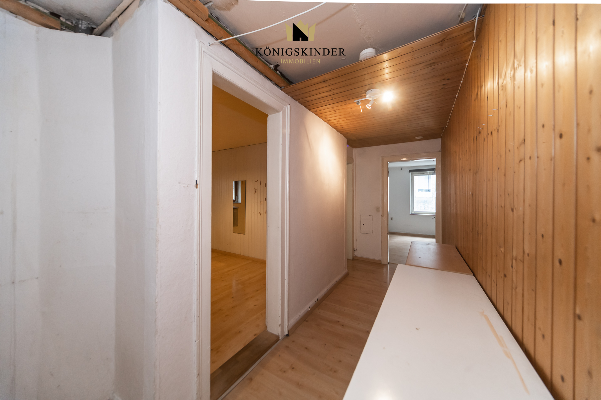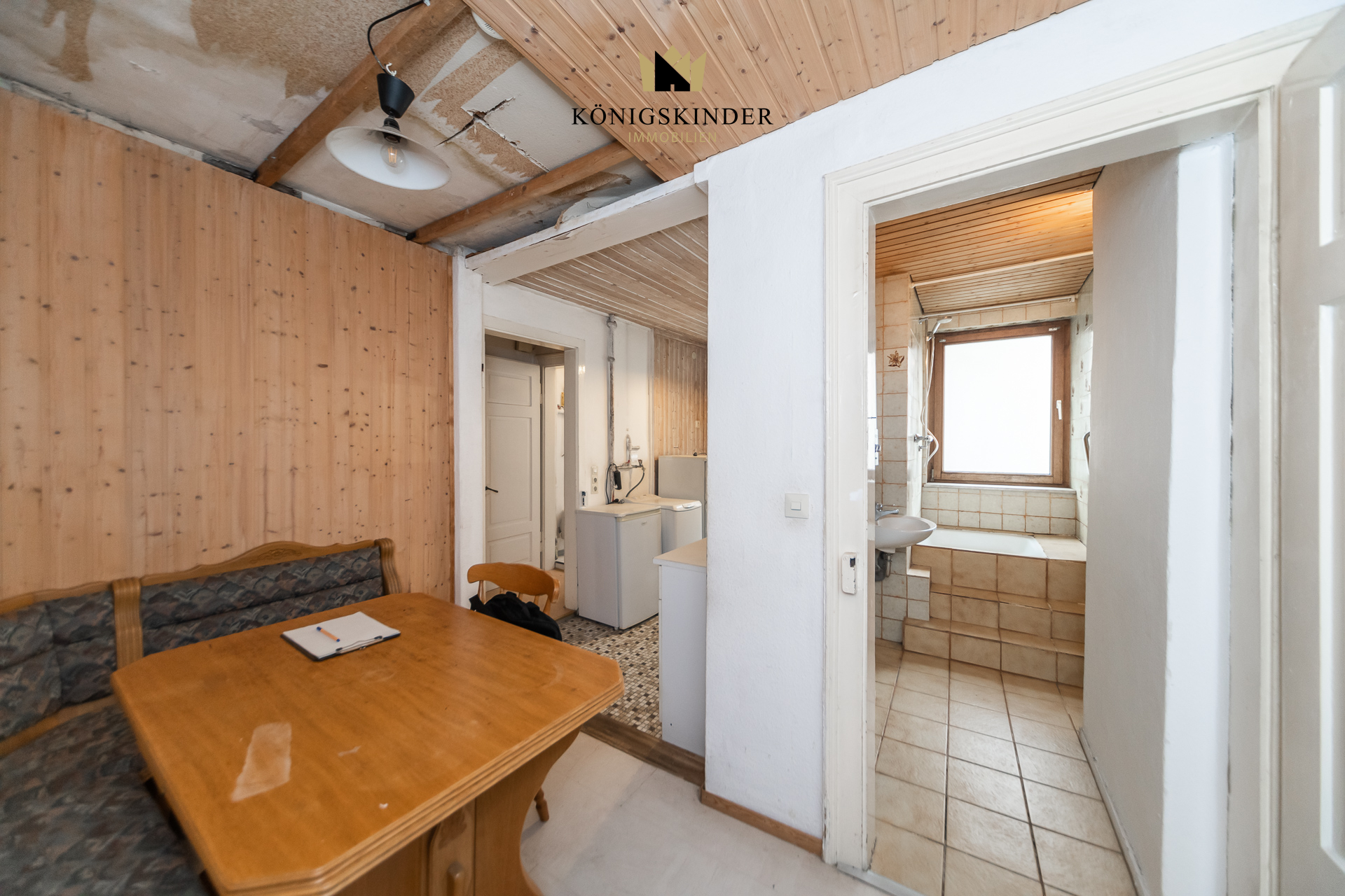 Die Wohnung ist renovierungsbedürftig – und genau das ist ihr Plus. Oberflächen, Bad, Küche: Wer Lust hat, entscheidet selbst über Stil und Qualität und hebt so das volle Potenzial. Hinweis zur Historie: In der oberhalb liegenden Wohnung gab es in der Vergangenheit einen Wasserschaden; die Ursache wurde behoben und fachgerecht getrocknet. Die Deckenfläche in der angebotenen Wohnung wurde bewusst nicht neu aufgebaut, damit der künftige Eigentümer die Ausführung nach eigenem Geschmack und Standard wählen kann.