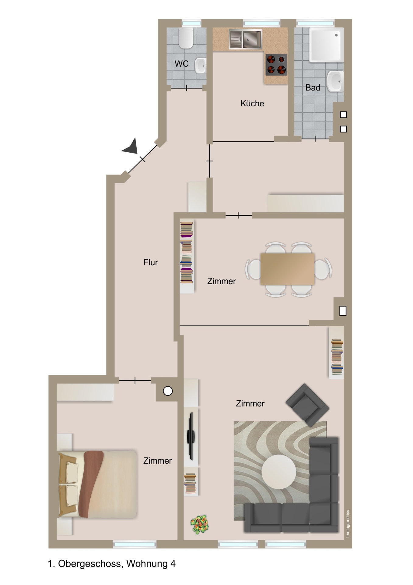 Diese helle 3-Zimmer-Wohnung im 1. Obergeschoss eines Hauses von 1910 bringt genau das mit, was viele suchen: Substanz, Charme – und Raum für eigene Ideen. Auf rund 70 m² verteilen sich ein wohnlicher Schnitt, ein Tageslichtbad und Zimmer, die durch ihre freundliche Belichtung sofort ein gutes Gefühl geben. Man spürt: Mit einer Renovierung lässt sich hier ein wirklich stimmiges Zuhause schaffen.