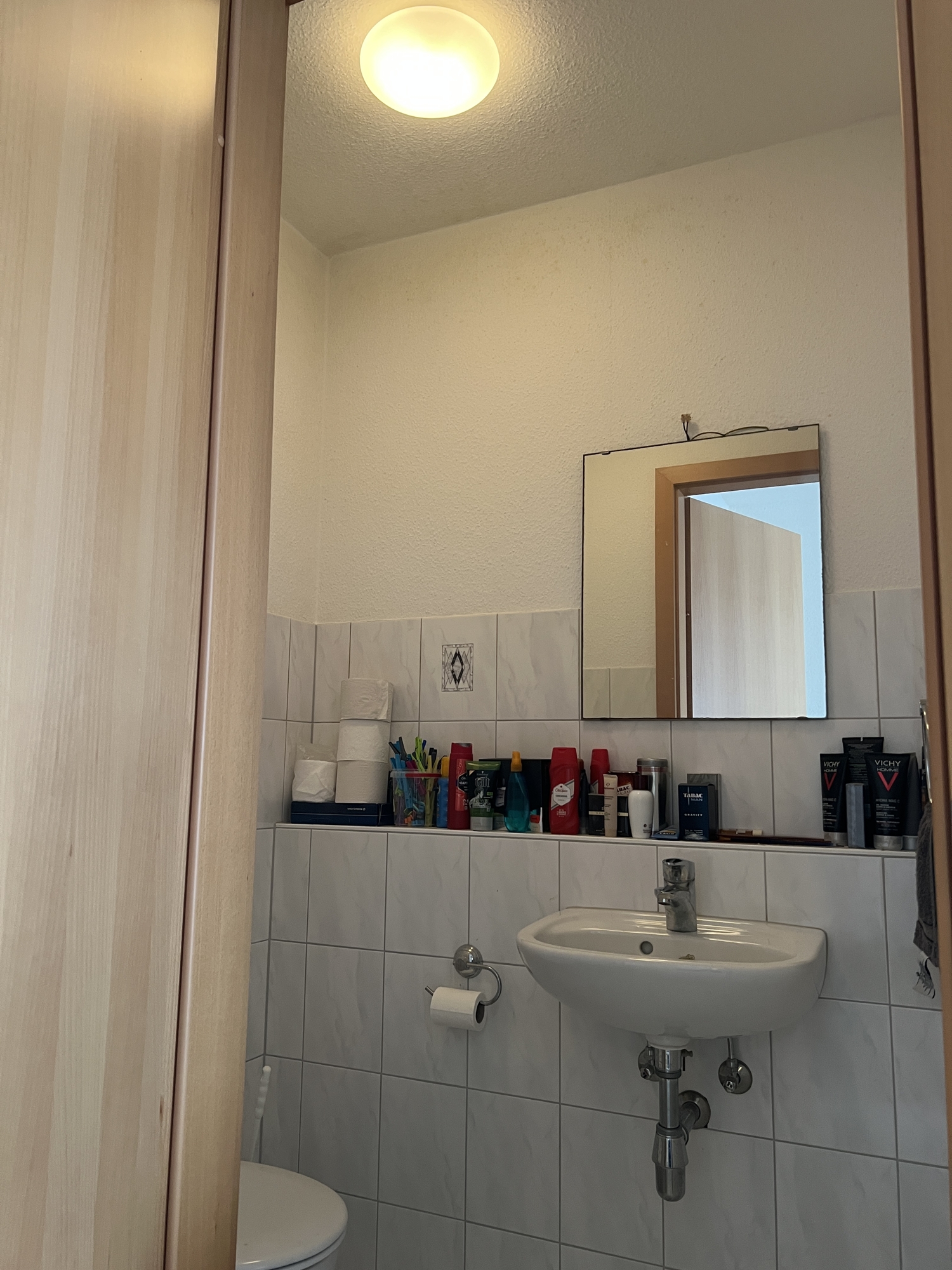 - GÄSTE-WC: 1 hell gefliestes modernes Gäste-WC mit 1 Waschbecken, 1 WC