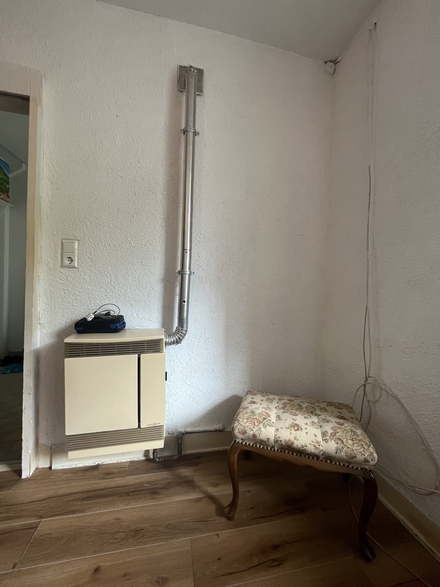Die Immobilie verfügt über drei Zimmer, darunter ein geräumiges Schlafzimmer sowie ein Wohnzimmer. Ein Highlight ist der große Balkon auf der Sonnenseite, der zusätzlichen Raum im Freien bietet und zum Entspannen einlädt. Ergänzt wird dies durch einen kleinen, aber gepflegten Vorgarten, der zusätzlichen Charme und einladende Atmosphäre schafft. Das Haus wird mit Gas-Einzelöfen beheizt, sodass die Bewohner die Beheizung der Räume nach ihren individuellen Bedürfnissen gestalten können. Trotz des renovierungsbedürftigen Zustands bietet das Haus enormes Potenzial für kreative Köpfe, die ihre Wohnträume verwirklichen möchten.