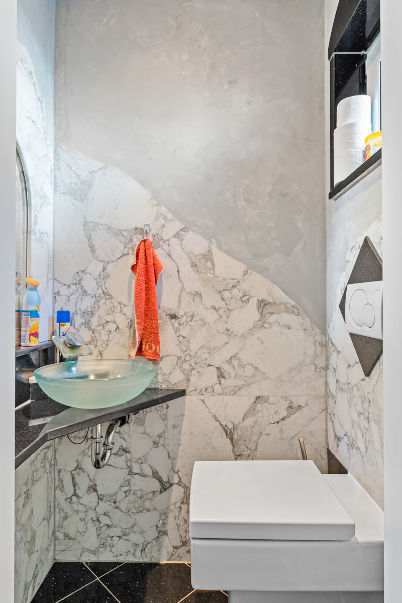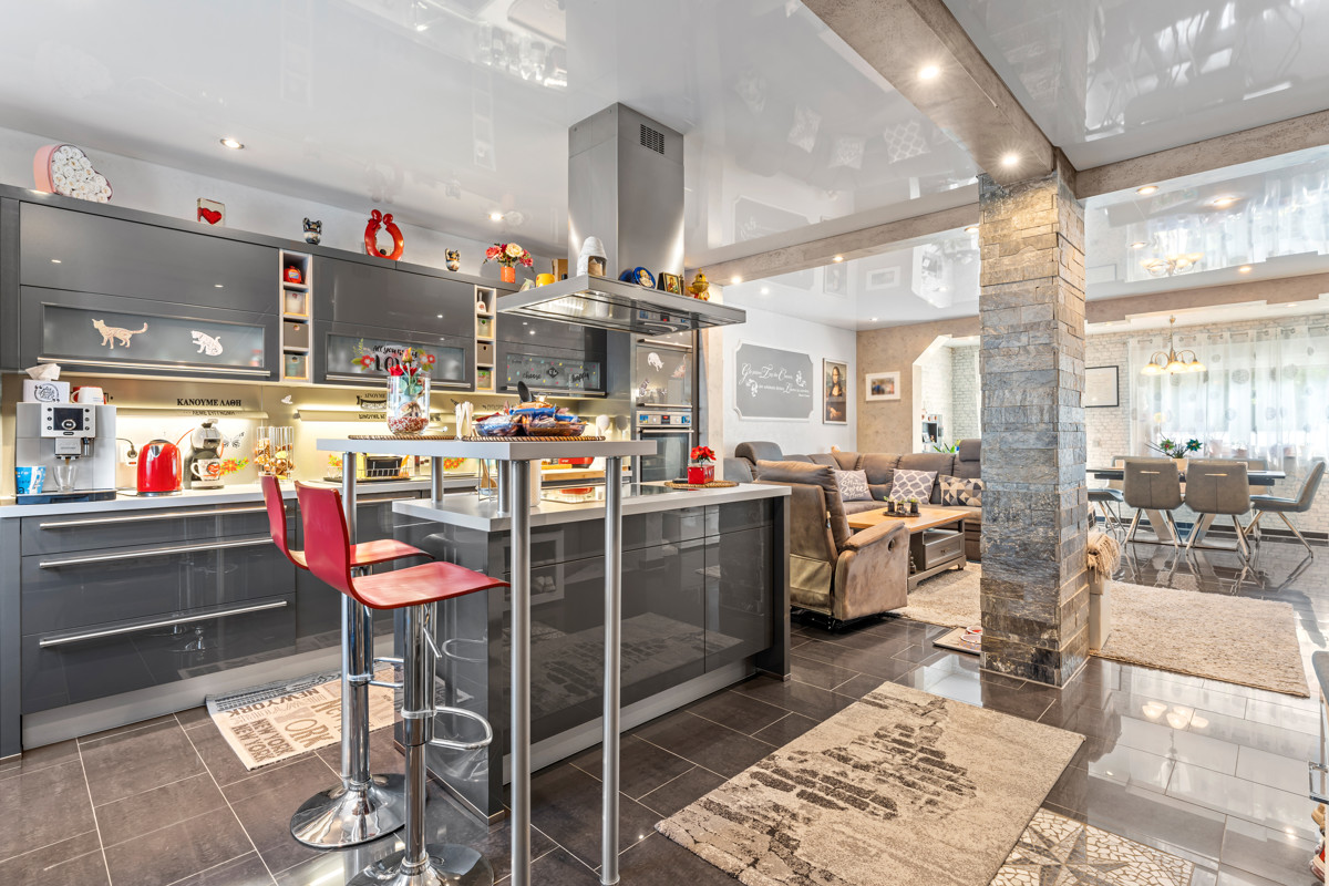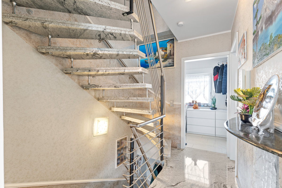 Der Innenausbau wurde von einem italienischen Architekten nach höchsten Anforderungen geplant. Sie finden Spannlackdecken mit LED Beleuchtung, Granitfußböden, Wände und Säulen in Verblendstein, geschmackvolle Bäder und Gäste WC.