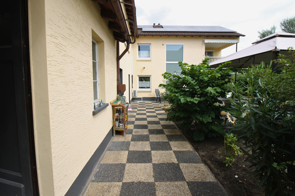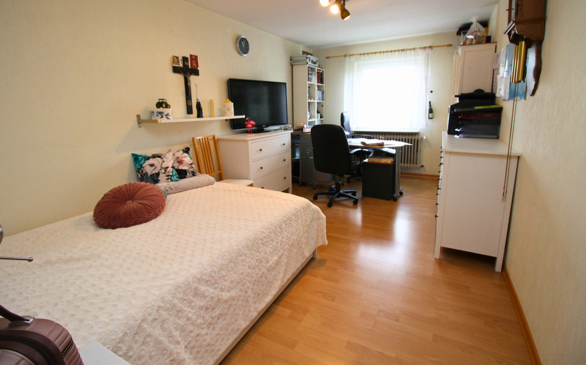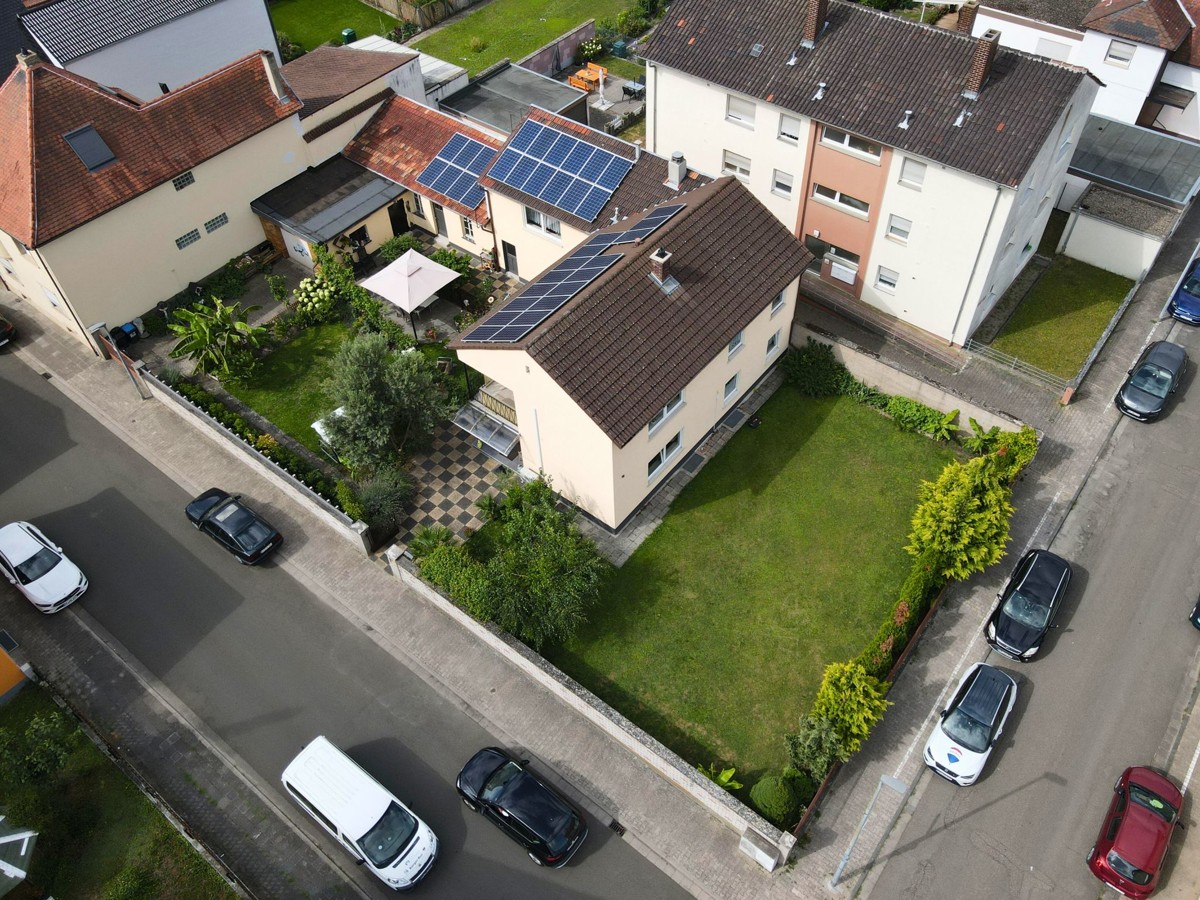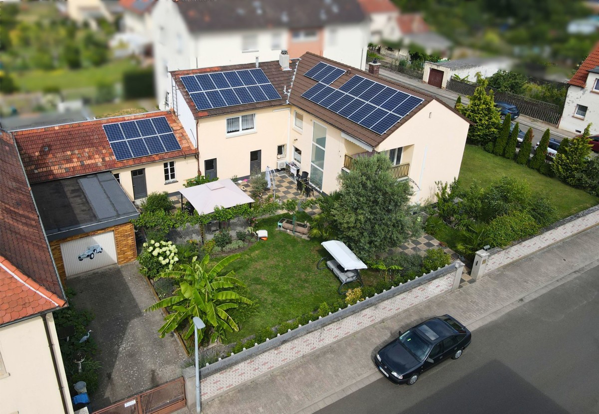 Dieses charmante Ein-Zweifamilienhaus wurde im Laufe der Zeit fünf mal umgebaut bzw. erweitert und ist so auf dem neuesten Stand. Mit einer Wohnfläche von 160 m² ist hier genügend Platz für 1-2 Familien. Das Objekt befindet sich auf einem großzügigen Grundstück von 680 m², welches sich ideal auch teilen lässt und so für weitere Bauvorhaben großes Potential bietet. Beim Betreten des Hauses empfängt Sie ein großer einladender Flur, der zu den verschiedenen Bereichen im Erdgeschoss führt. Hier finden Sie ein helles Wohnzimmer, das durch große Fenster viel Tageslicht erhält und direkten Zugang auf die Terrasse hat. Die angrenzende Küche ist funktional gestaltet und bietet ausreichend Platz für gemeinsame Mahlzeiten. Ein Schlafzimmer und ein modernes, behindertengerechtes Badezimmer runden das Raumangebot im Erdgeschoss ab. Im Obergeschoss wurde 1988 ein zusätzliches Zimmer angebaut, welches zur Zeit als Schlafzimmer genutzt wird. Die Küche ist sehr modern ausgestattet. Ein weiteres Zimmer kann als Kinderzimmer oder Büro genutzt werden. Highlight ist der Balkon, welcher direkt vom Wohnzimmer aus zugänglich ist und zum Entspannen im Freien einlädt. Auch das Obergeschoss verfügt über ein weiteres Badezimmer und eine Klimaanlage im Wohnzimmer und im Schlafzimmer, die für optimalen Komfort sorgen. Der Keller bietet zusätzlichen Stauraum. Eine große Doppelgarage mit Grube ist ideal für Tüftler und sorgt für komfortable Parkmöglichkeiten. Zwei weitere Stellplätze befinden sich direkt vor der Garage auf dem Grundstück. Der gepflegte Garten ist ein Paradies für Naturliebhaber und bietet zahlreiche Gestaltungsmöglichkeiten. Ein Brunnen sorgt für eine effiziente Bewässerung des Gartens. Mit der Photovoltaikanlage sind Sie für die Zukunft gut gerüstet, da sie eine nachhaltige Energie- und Einnahmequelle bietet.
