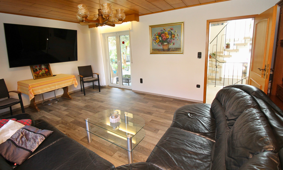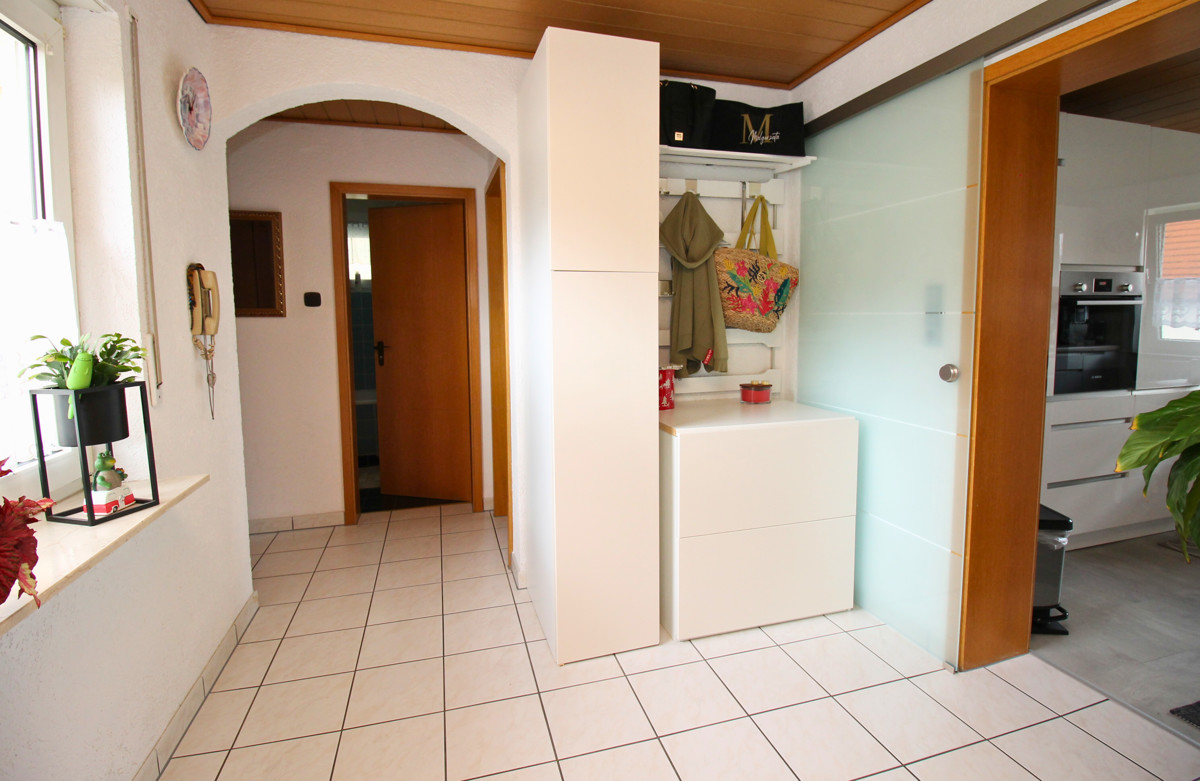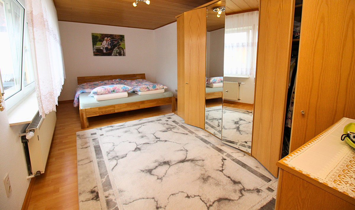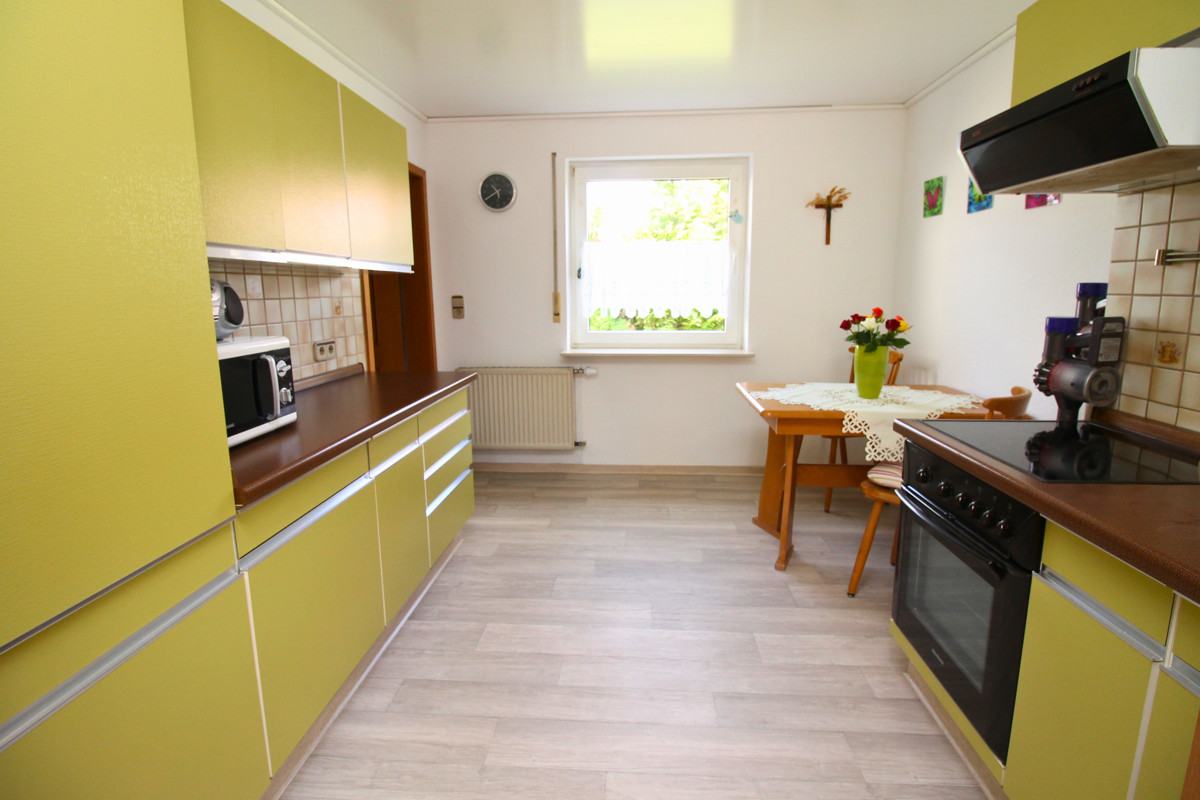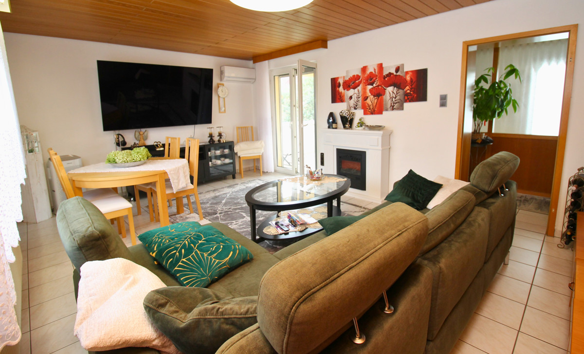 Dieses charmante Ein-Zweifamilienhaus wurde im Laufe der Zeit fünf mal umgebaut bzw. erweitert und ist so auf dem neuesten Stand. Mit einer Wohnfläche von 160 m² ist hier genügend Platz für 1-2 Familien. Das Objekt befindet sich auf einem großzügigen Grundstück von 680 m², welches sich ideal auch teilen lässt und so für weitere Bauvorhaben großes Potential bietet. Beim Betreten des Hauses empfängt Sie ein großer einladender Flur, der zu den verschiedenen Bereichen im Erdgeschoss führt. Hier finden Sie ein helles Wohnzimmer, das durch große Fenster viel Tageslicht erhält und direkten Zugang auf die Terrasse hat. Die angrenzende Küche ist funktional gestaltet und bietet ausreichend Platz für gemeinsame Mahlzeiten. Ein Schlafzimmer und ein modernes, behindertengerechtes Badezimmer runden das Raumangebot im Erdgeschoss ab. Im Obergeschoss wurde 1988 ein zusätzliches Zimmer angebaut, welches zur Zeit als Schlafzimmer genutzt wird. Die Küche ist sehr modern ausgestattet. Ein weiteres Zimmer kann als Kinderzimmer oder Büro genutzt werden. Highlight ist der Balkon, welcher direkt vom Wohnzimmer aus zugänglich ist und zum Entspannen im Freien einlädt. Auch das Obergeschoss verfügt über ein weiteres Badezimmer und eine Klimaanlage im Wohnzimmer und im Schlafzimmer, die für optimalen Komfort sorgen. Der Keller bietet zusätzlichen Stauraum. Eine große Doppelgarage mit Grube ist ideal für Tüftler und sorgt für komfortable Parkmöglichkeiten. Zwei weitere Stellplätze befinden sich direkt vor der Garage auf dem Grundstück. Der gepflegte Garten ist ein Paradies für Naturliebhaber und bietet zahlreiche Gestaltungsmöglichkeiten. Ein Brunnen sorgt für eine effiziente Bewässerung des Gartens. Mit der Photovoltaikanlage sind Sie für die Zukunft gut gerüstet, da sie eine nachhaltige Energie- und Einnahmequelle bietet.