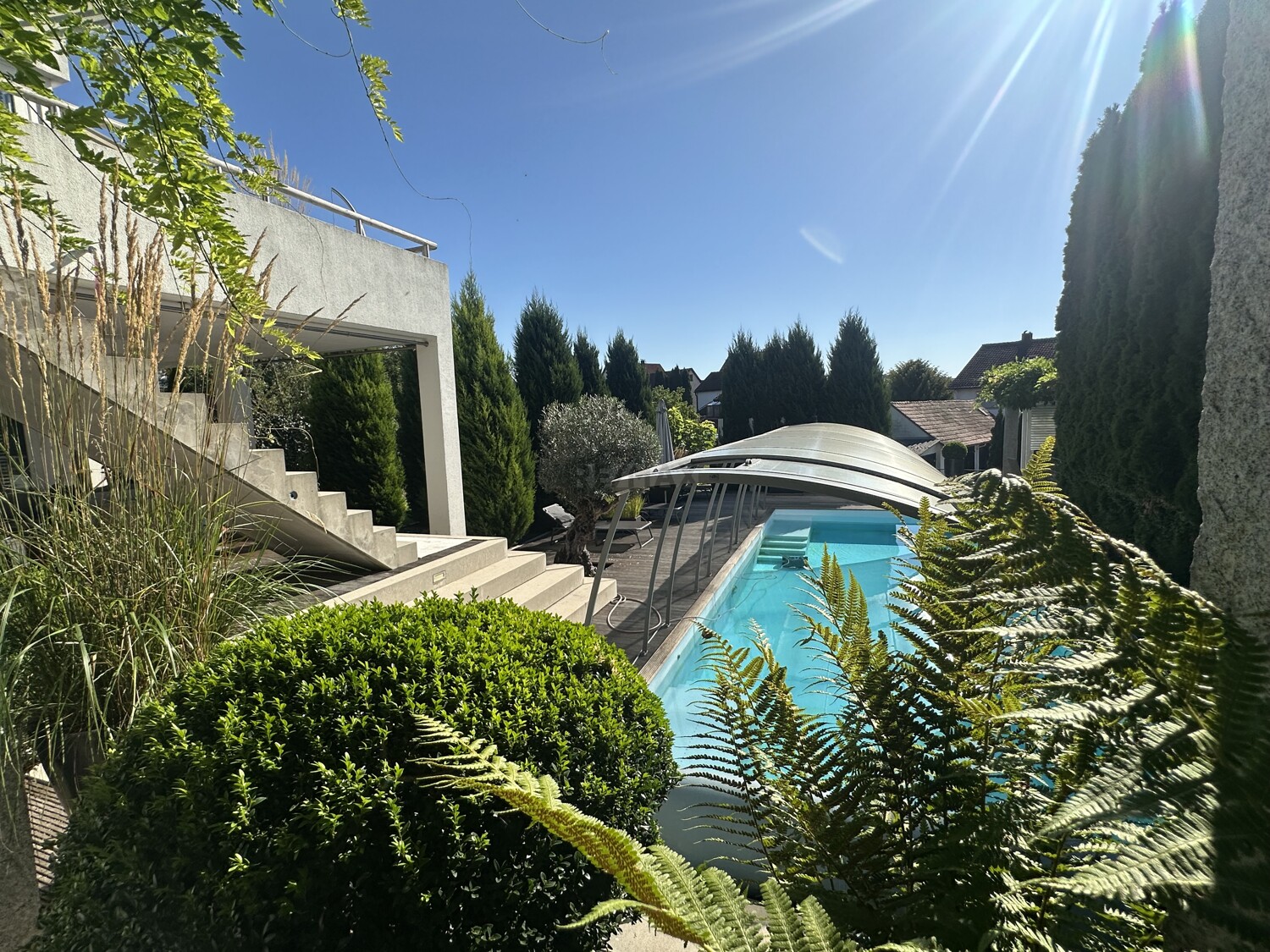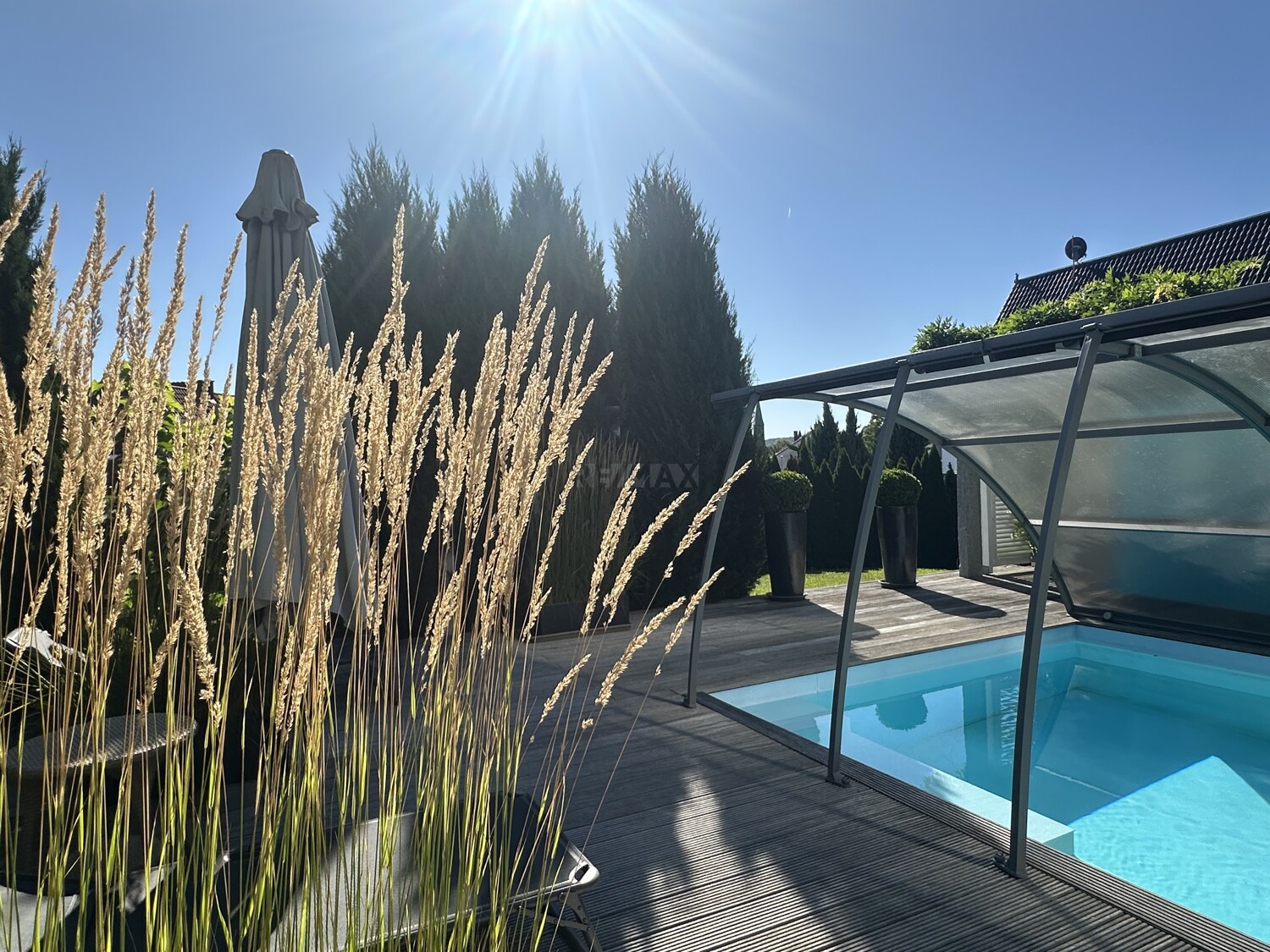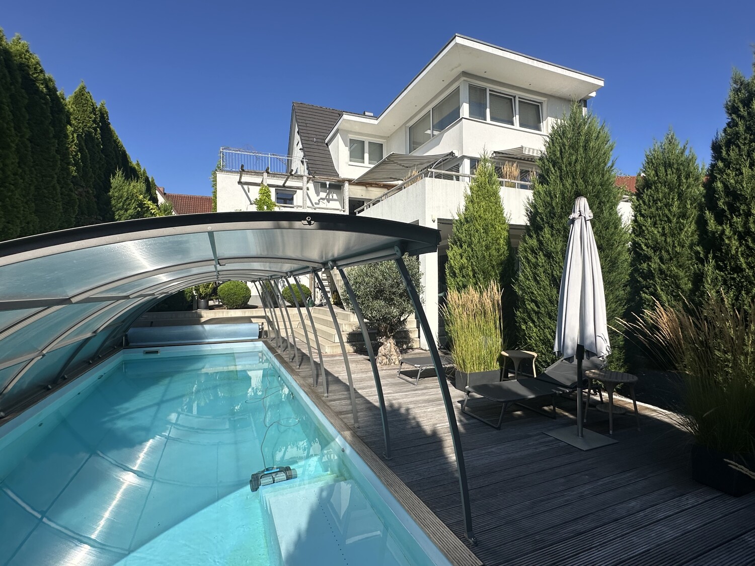 Das absolute Highlight ist der traumhafte überdachte Pool mit moderner Wärmepumpe – ein Luxus, der pure Urlaubsstimmung in den Alltag bringt.