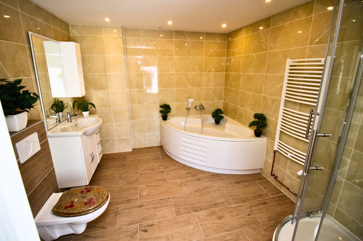 -LED-Spots durchgehend in allen Decken im gesamten Haus -Zwei Garagen, darunter eine großzügige Doppelgarage -Zusätzlich ein Stellplatz direkt vor der Garage -Badezimmer mit Badewanne und Dusche sowie separates Gäste-WC -Vielseitige und gut durchdachte Raumaufteilung -Schöne, großzügige Dachterrasse – ideal zum Entspannen -Ausbaufähige Einliegerwohnung mit separatem Zugang und direktem Zugang zu einem kleinen Garten -Helle Räume mit großen Fensterflächen -Modernisierung im Jahr 2024 abgeschlossen