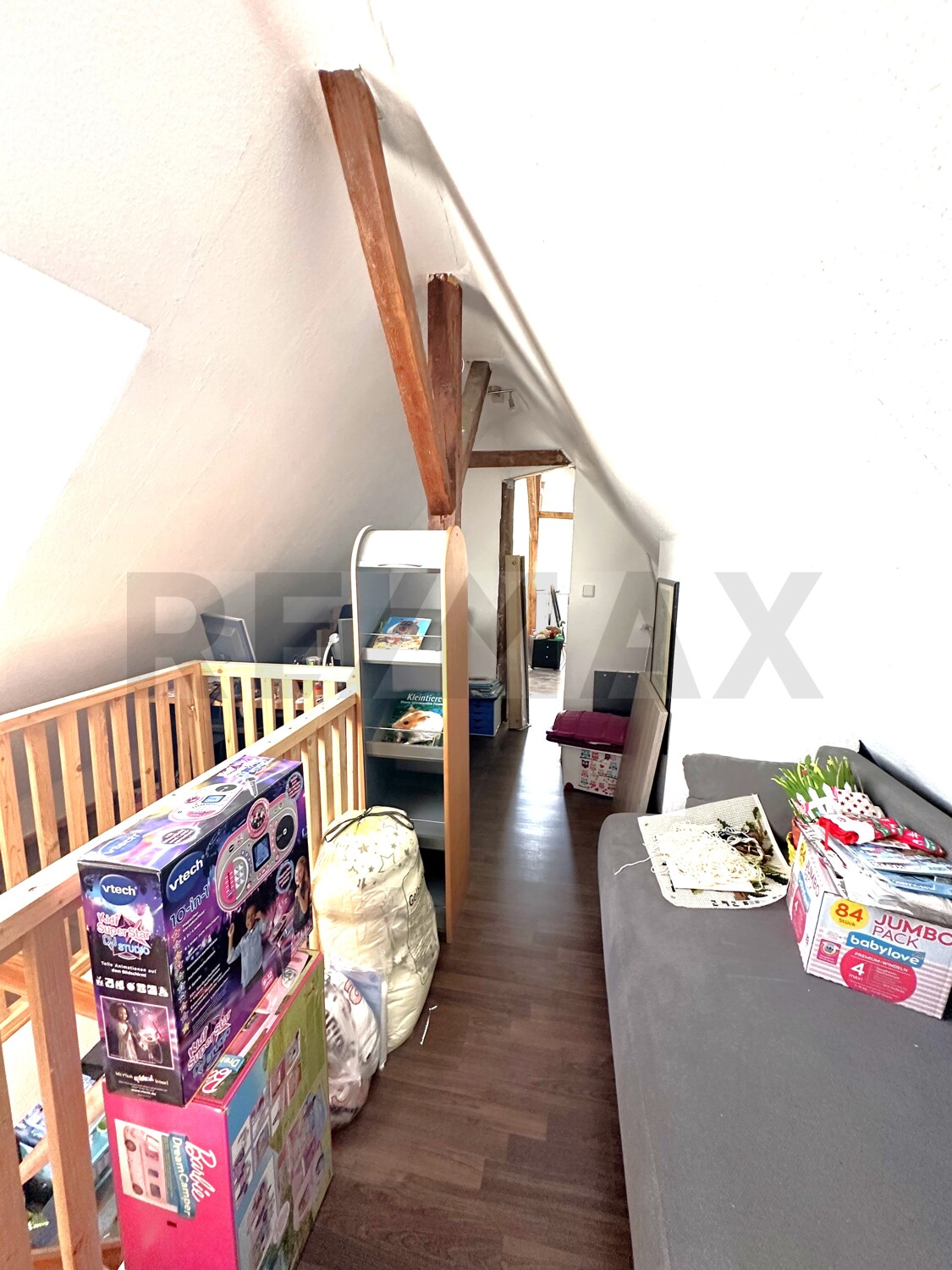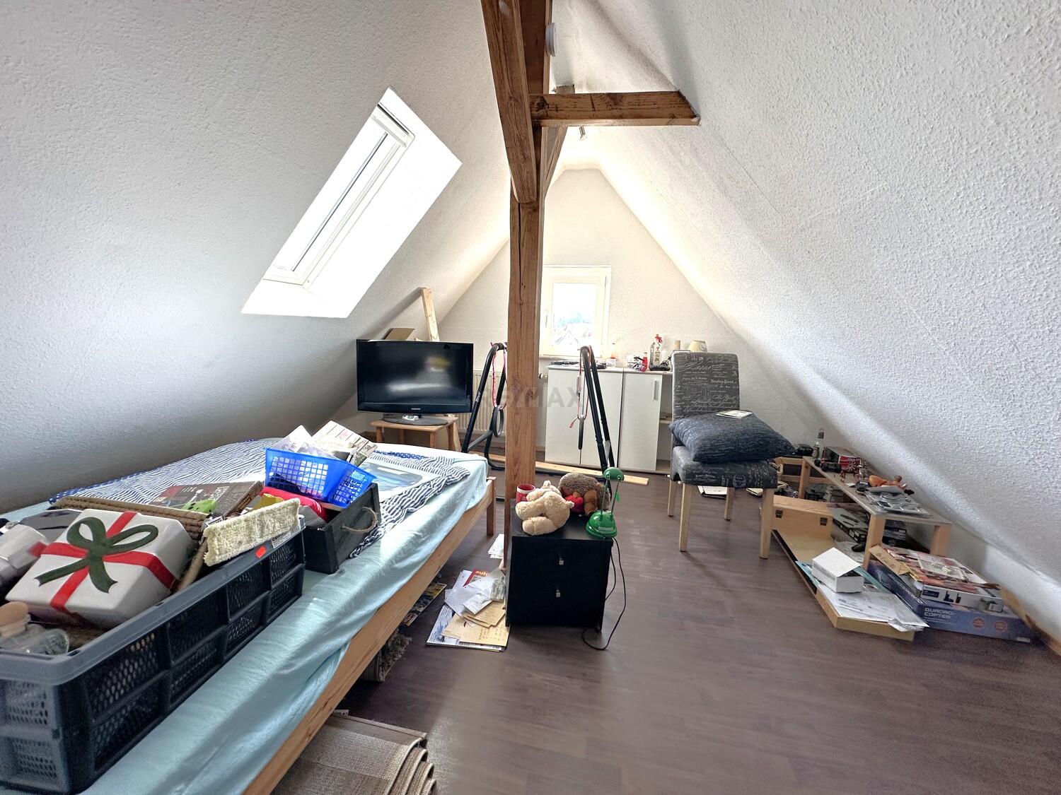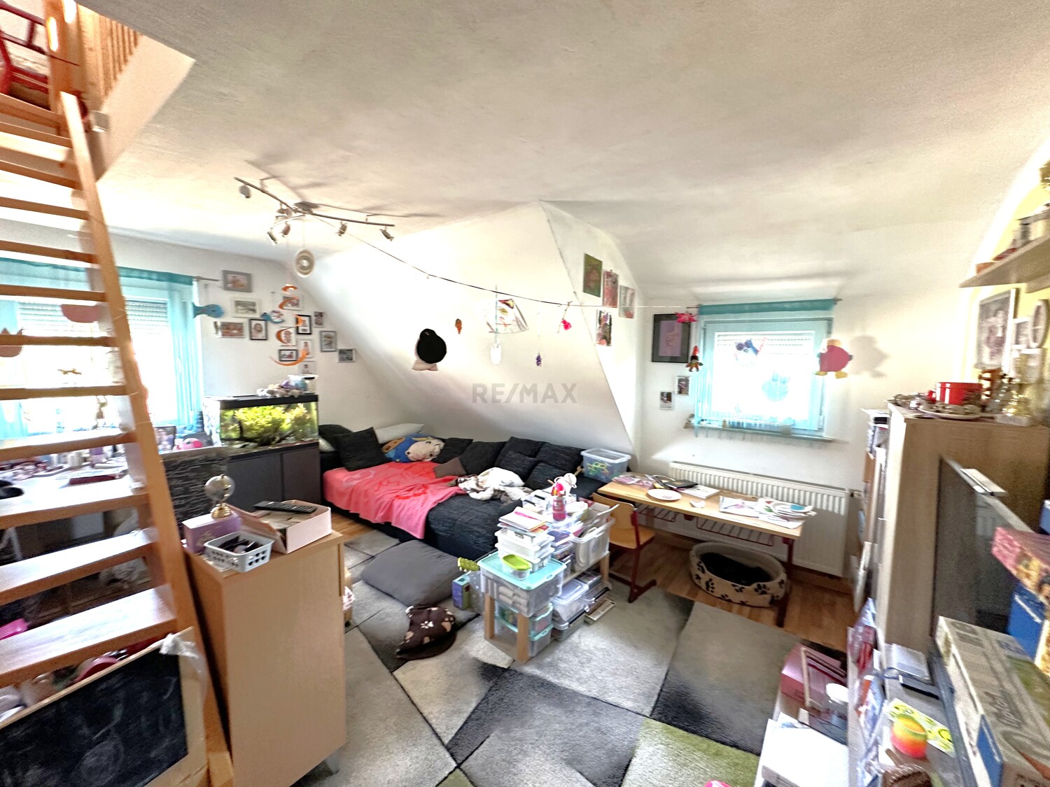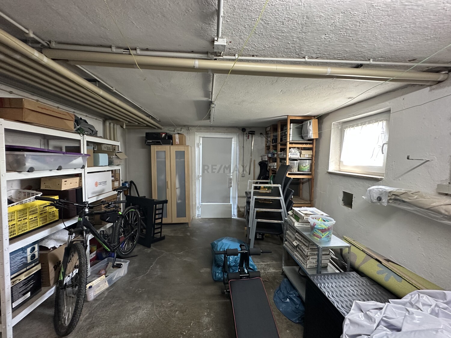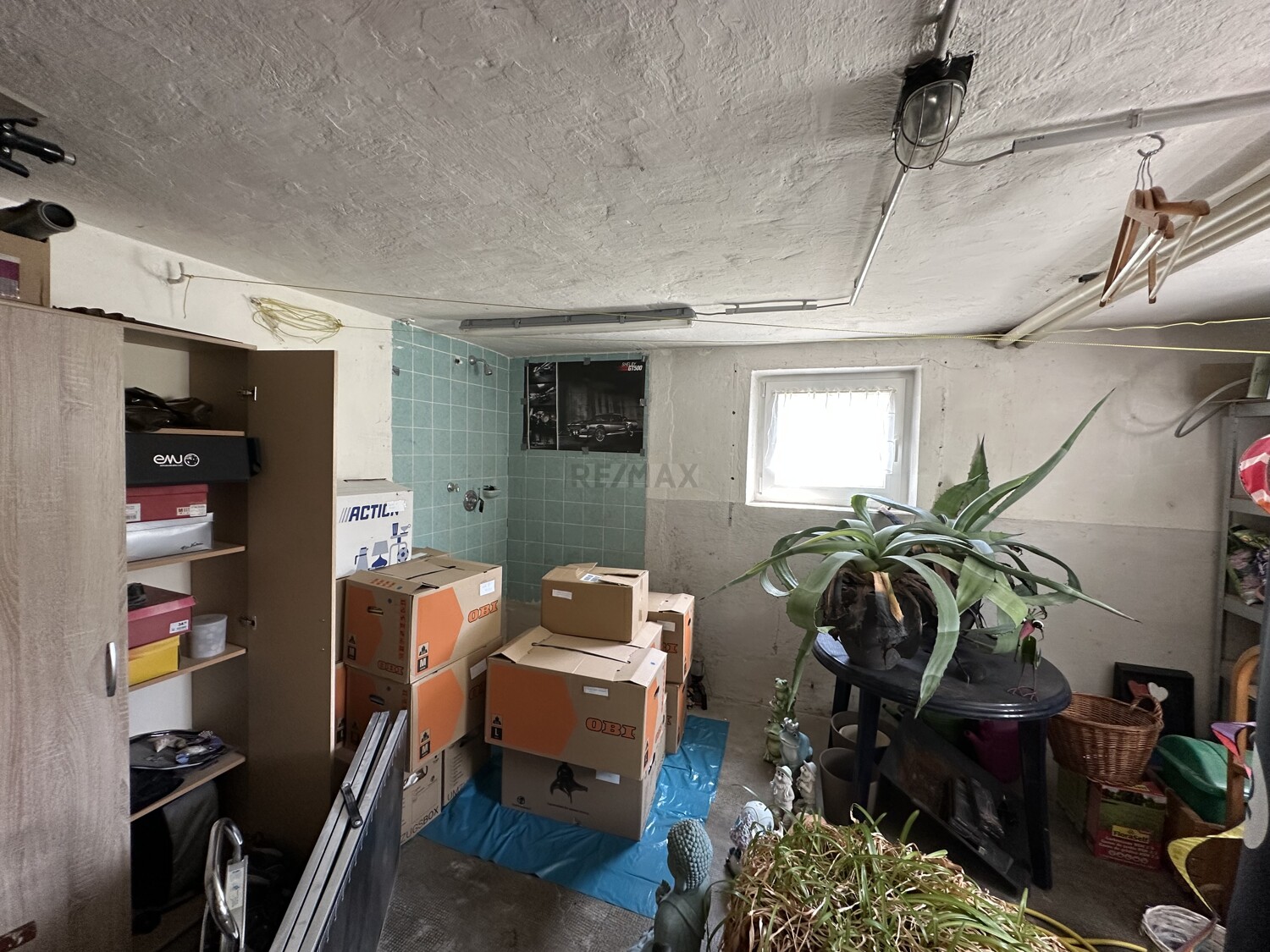 Das Erdgeschoss verfügt über ein Wohnzimmer, Schlafzimmer, Esszimmer, eine Küche mit zusätzlichem Nebenraum, ein WC sowie ein Badezimmer mit Dusche. Im Dachgeschoss befinden sich ein weiteres Wohnzimmer, Schlafzimmer, Kinderzimmer, eine Küche, WC und ein Badezimmer mit Badewanne. Vom Wohnzimmer aus führt eine Holztreppe in den ausgebauten Dachboden und schafft somit zusätzliche Nutzfläche in Form von zwei Zimmer die als Spielzimmer oder als Home Office genutzt werden können. Das Haus ist voll unterkellert mit Waschküche, Heizraum, Gewölbekeller sowie einem weiteren Abstellraum. Beheizt wird die Immobilie mit einer Ölheizung; der unterirdische Tank befindet sich außerhalb des Hauses.