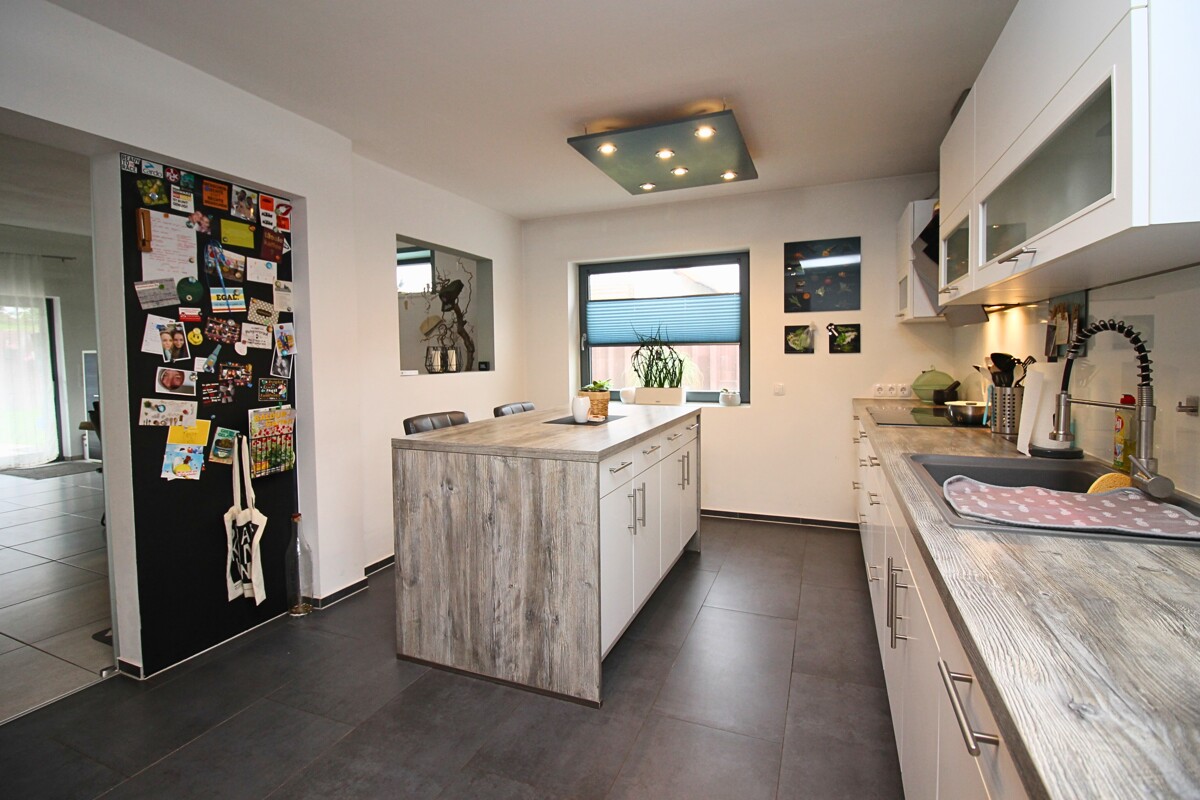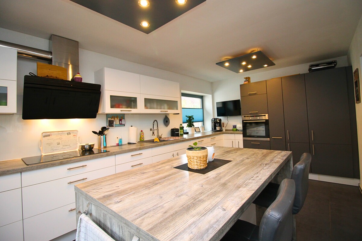 Das Haupthaus wurde ebenfalls 2020 vollständig saniert und präsentiert sich in einem modernen, gepflegten Zustand. Im Erdgeschoss empfängt Sie ein offener Essbereich mit Blick in den Garten sowie eine großzügige, moderne Küche, die keine Wünsche offenlässt. Das gesamte Haus ist mit Fußbodenheizung ausgestattet und bietet ein angenehmes Wohnklima.