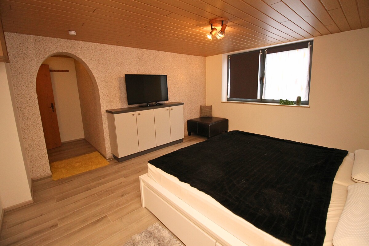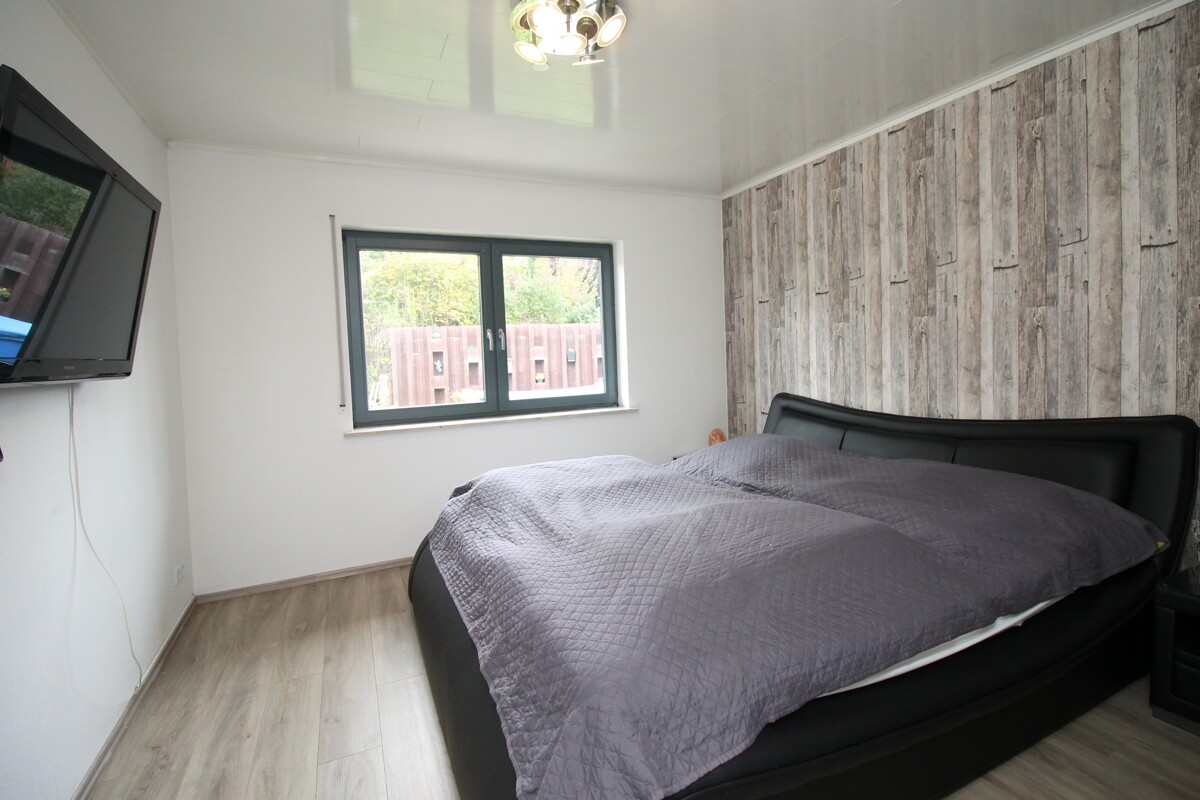 Beim Betreten des Hauses erwartet Sie im Erdgeschoss der separate Eingang zur ca. 60 m² großen Einliegerwohnung. Diese wurde 2020 modern saniert und überzeugt mit einem großzügigen Wohnbereich mit offener Küche, sowie einem hellen Schlafzimmer. Perfekt geeignet für Gäste, zur Vermietung oder als komfortabler Wohnbereich für Eltern oder erwachsene Kinder.