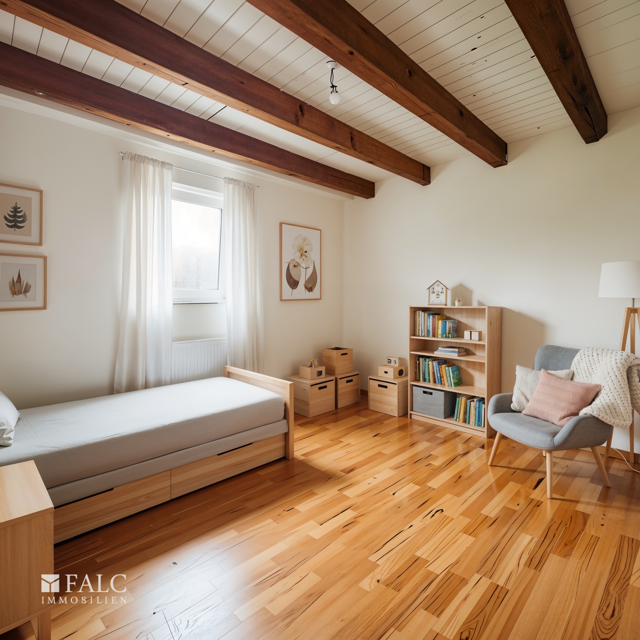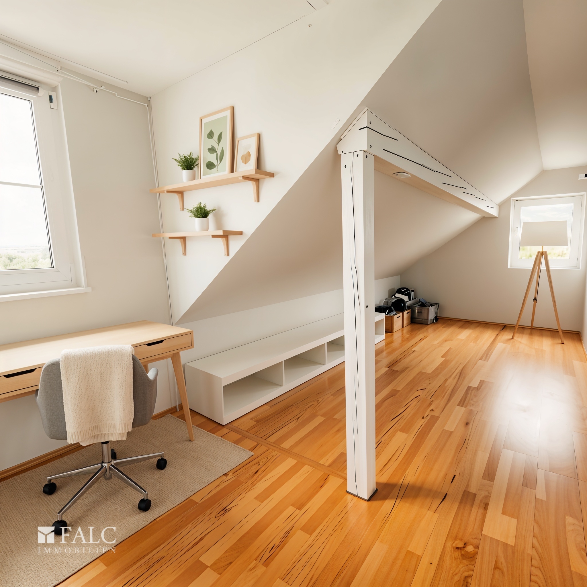 Das 2. Obergeschoss besticht durch eine großzügige Diele mit einem praktischen, großen Einbauschrank, der wertvollen Stauraum bietet. Zwei weitere, lichtdurchflutete Zimmer eröffnen vielfältige Nutzungsmöglichkeiten – ob als Schlafzimmer, Kinderzimmer oder Homeoffice, hier findet jedes Familienmitglied seinen persönlichen Rückzugsort. Ein weiteres Badezimmer mit Duschkabine sorgt auf dieser Ebene für zusätzlichen Komfort und kurze Wege. Dank des durchdachten Grundrisses lässt sich das gesamte 2. Obergeschoss auch hervorragend als eigenständiger Kinderbereich gestalten – mit separatem Bad, gemütlichen Rückzugsräumen und ausreichend Platz zum Spielen und Entfalten. So entsteht ein ideales Reich für die jüngeren Familienmitglieder, das Geborgenheit und Freiraum zugleich bietet.
