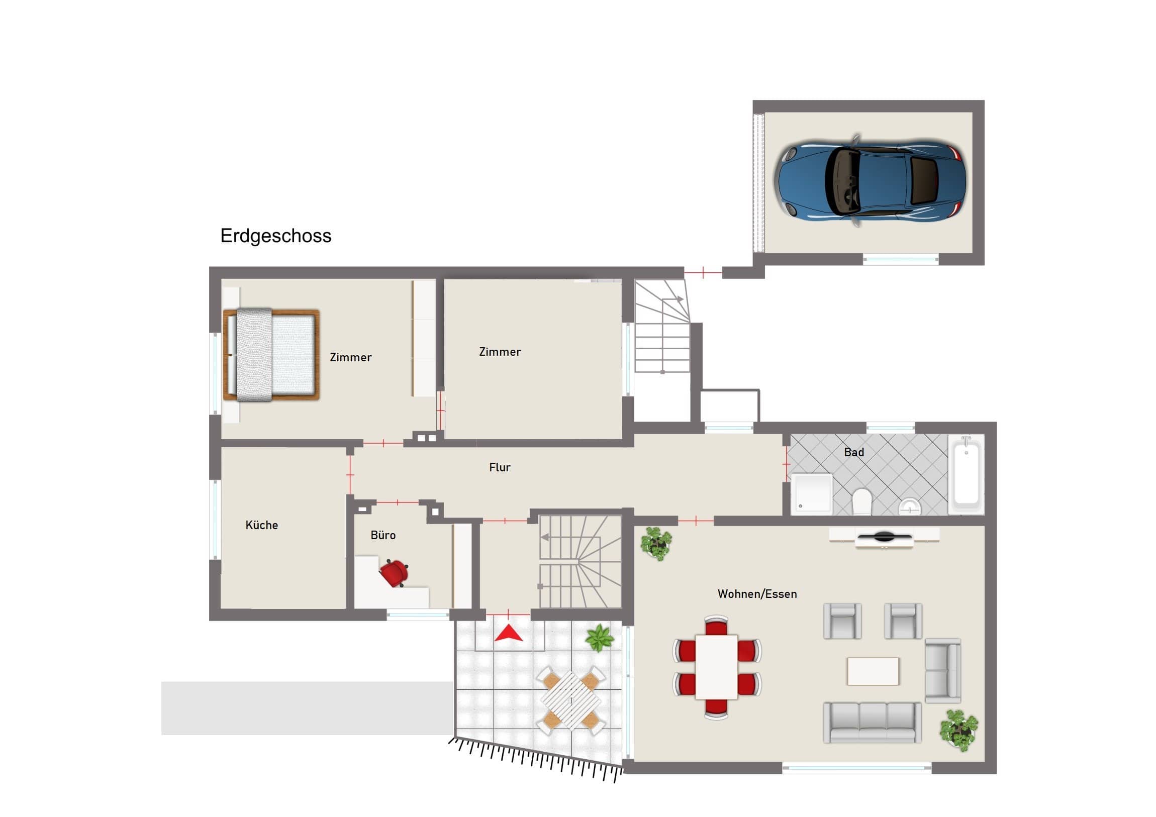 Das Haus ist voll unterkellert und Ihr Auto parkt in der Garage.