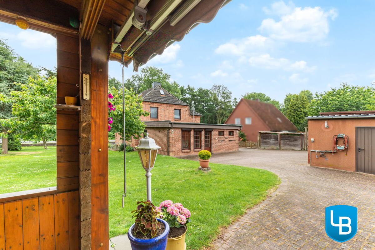 Besonders hervorzuheben ist der großzügige Garten mit altem Baumbestand, offenen Rasenflächen und gemütlichen Rückzugsorten. Ein Holzgartenhaus und ein Geräteschuppen ergänzen den Außenbereich sinnvoll. Drei Garagen (wobei eine für ein Camping-Auto geeignet ist) sowie drei weitere Stellplätze sorgen für zusätzlichen Komfort.