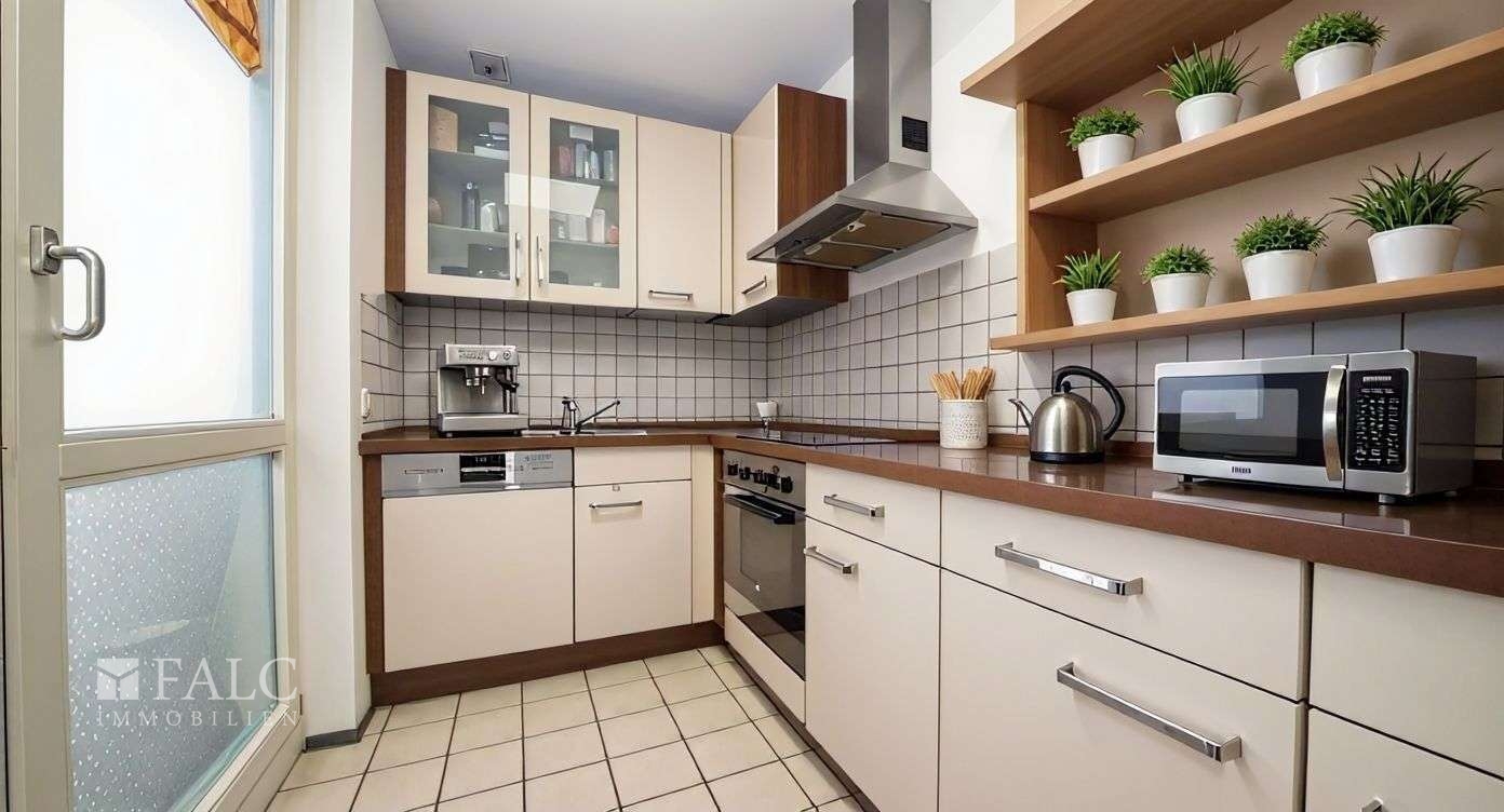 Eine großzügige Küche, mit viel Stauraum für Vorräte und Utensilien lässt das Herz der Küchenfee höher schlagen. Ein leistungsstarker Backofen, ein Induktionskochfeld mit eingebautem Dunstabzug und eine geräumige Kühl- und Gefrierkombination verbleibt in der Immobilie. Verwöhnen Sie hier Ihre Lieben mit traditioneller Küche oder überraschen Sie Freunde in großer Runde mit kulinarischen Köstlichkeiten. Auf dem nach Westen ausgerichteten Balkon genießen Sie ein Gläschen Wein mit Ihren Liebsten und betrachten den Sonnenuntergang
