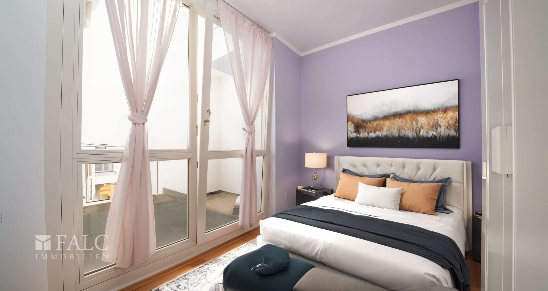 Das große, helle Schlafzimmer wartet auf Ihren individuellen Einrichtungsstil, verbringen Sie erholsame Stunden in Ihrer behaglichen Traumoase und starten Sie ausgeruht in den Tag. Auch von hieraus gelangen Sie auf den großen Balkon zur Ostseite, perfekt für den Morgenkaffee bei Sonnenaufgang.