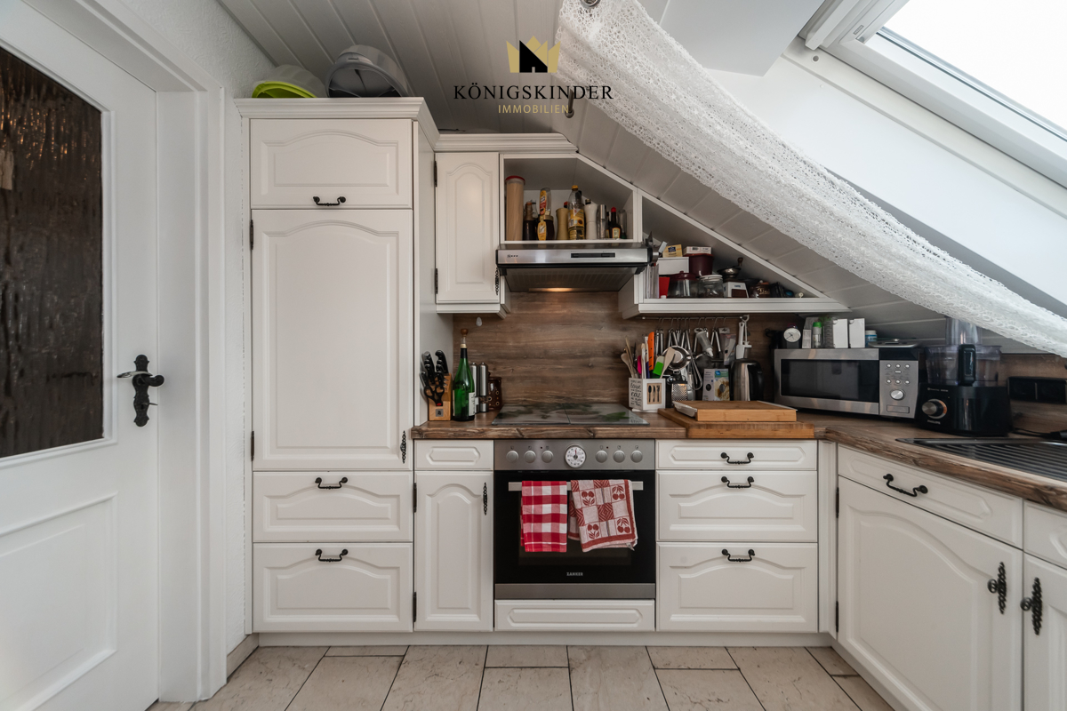 Sehr helle 3-Zimmer-DG-Wohnung mit Einbauküche & eigenem Gartenanteil & 2 Garagen in ruhiger Lage!
