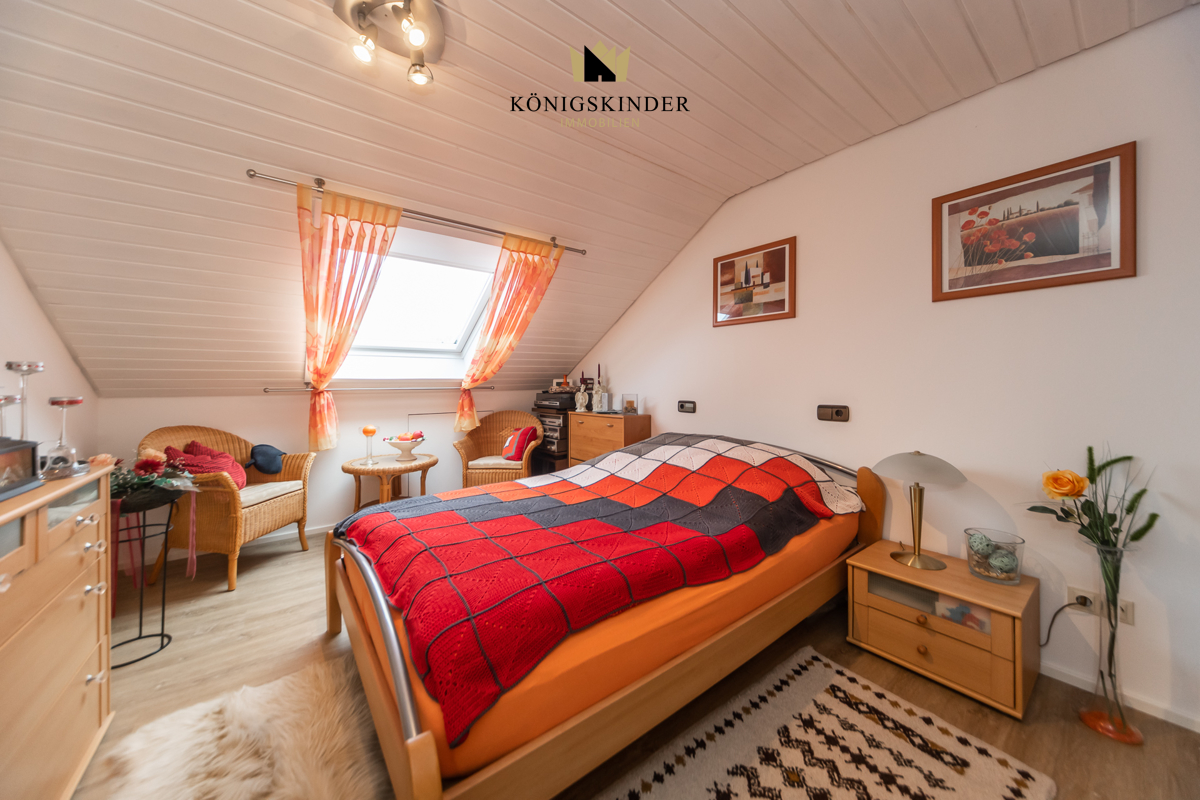 Sehr helle 3-Zimmer-DG-Wohnung mit eigenem Gartenanteil und 2 Garagen in ruhiger Lage!