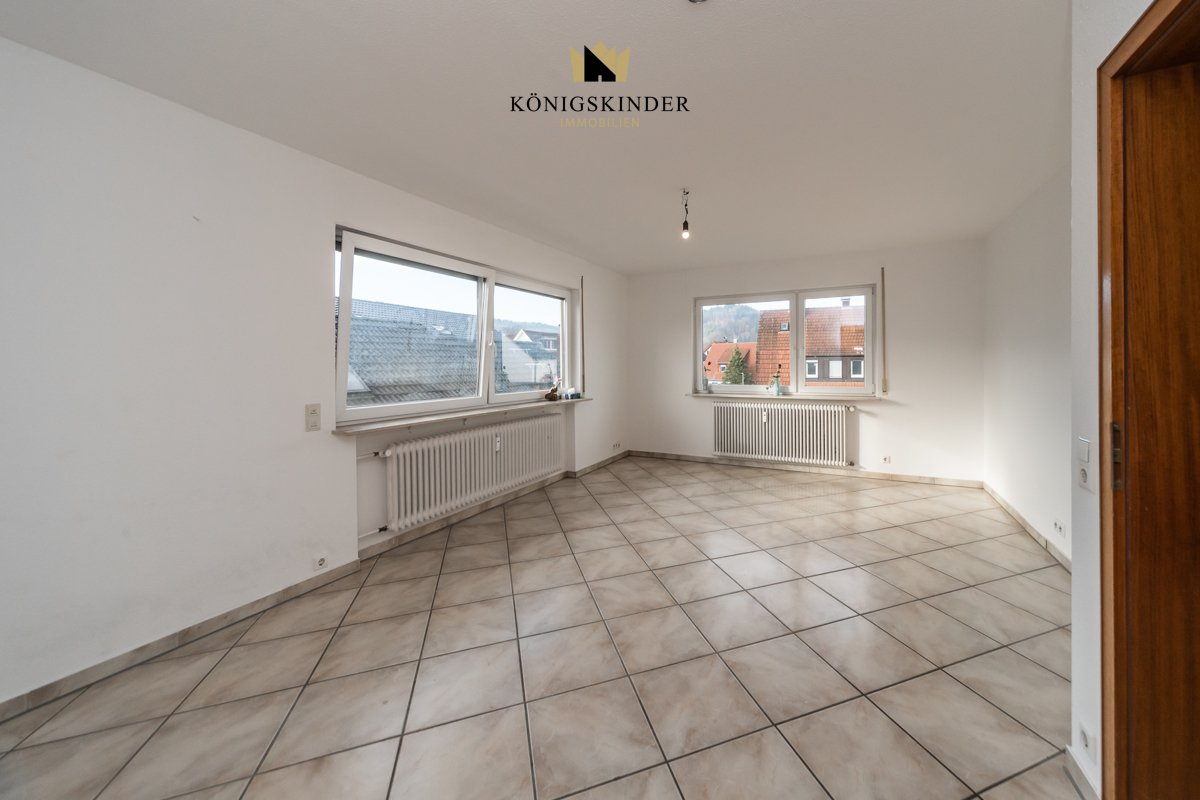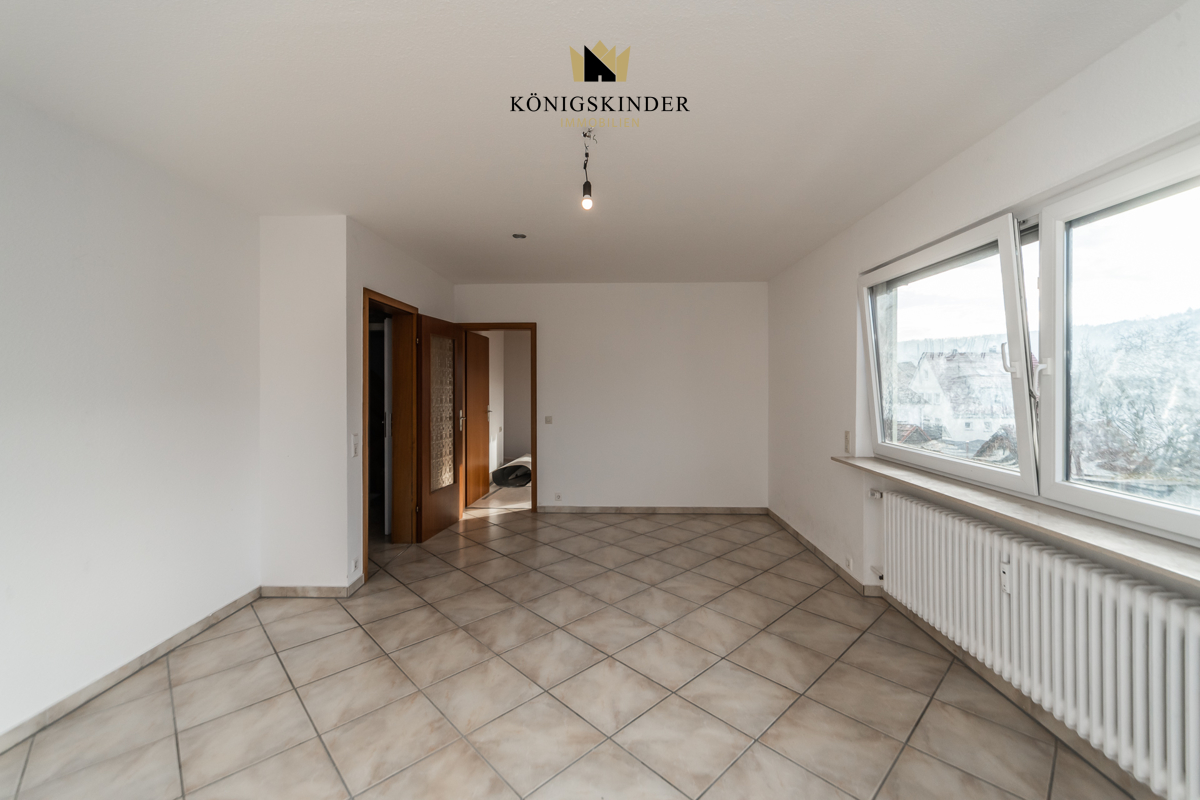 Das helle Wohnzimmer mit Zugang zum geräumigen Balkon lädt zum Entspannen ein und bietet einen schönen Blick ins Grüne. Drei gut geschnittene Schlafzimmer ermöglichen individuelle Rückzugsorte, während ein weiteres Zimmer flexibel als Arbeits-, Gäste- oder Hobbyraum genutzt werden kann.