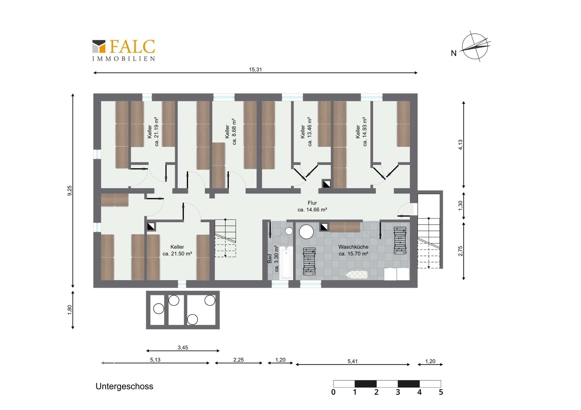 Im Kellergeschoss stehen den Mietern separate Abstellräume sowie eine gemeinschaftliche Waschküche zur Verfügung – praktisch und komfortabel für den Alltag.