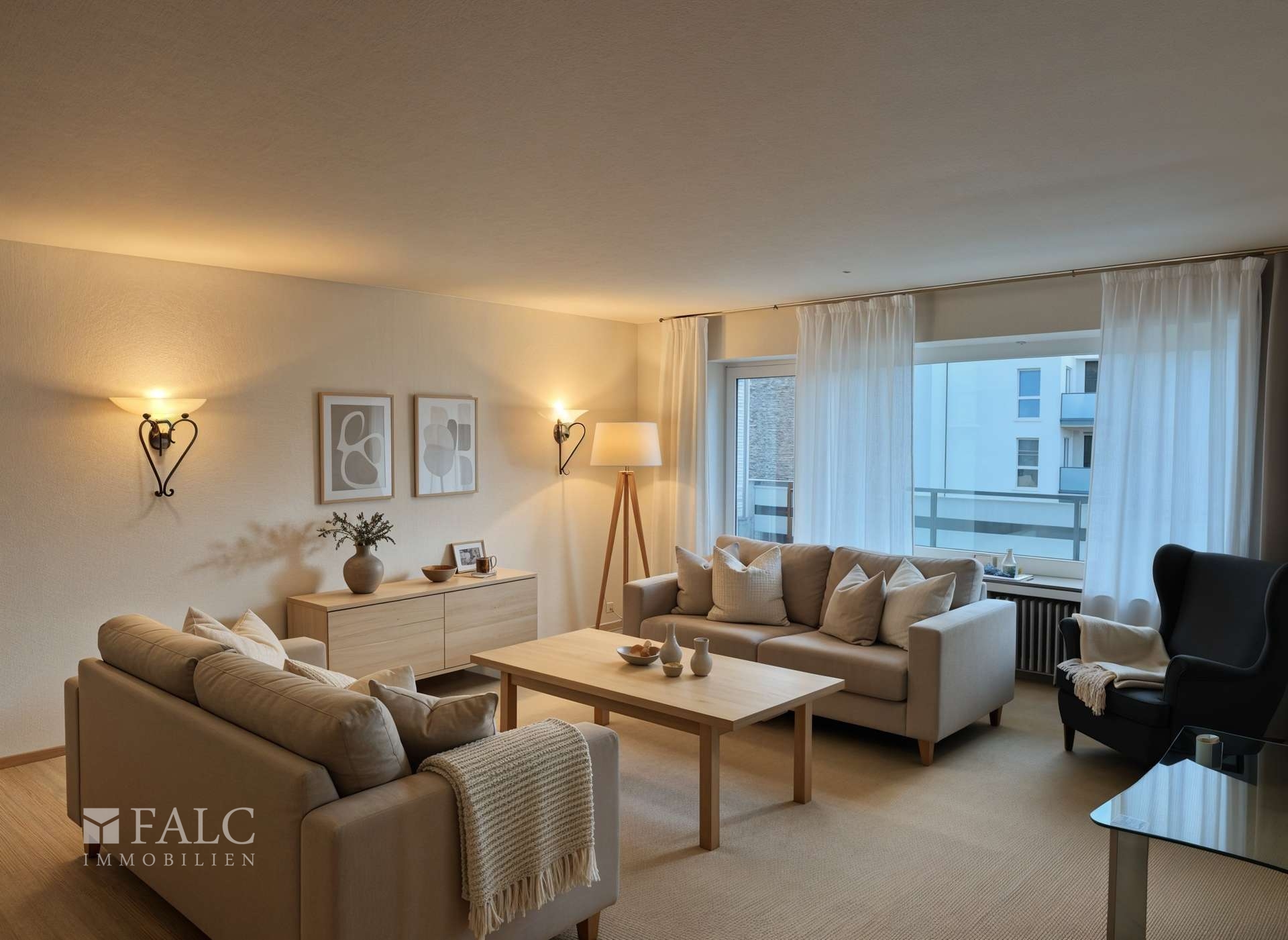 Beim Betreten dieser großzügigen 4-Zimmer-Wohnung mit einer Wohnfläche von 120 m² werden Sie von einem einladenden Eingangsbereich empfangen, der ausreichend Platz für eine Garderobe bietet. Von hier aus gelangen Sie direkt in das helle Wohnzimmer, das durch große Fensterfronten viel Tageslicht erhält und direkten Zugang zum Balkon bietet. Der Balkon ist ideal, um die frische Luft zu genießen und bietet ausreichend Platz für gemütliche Stunden.