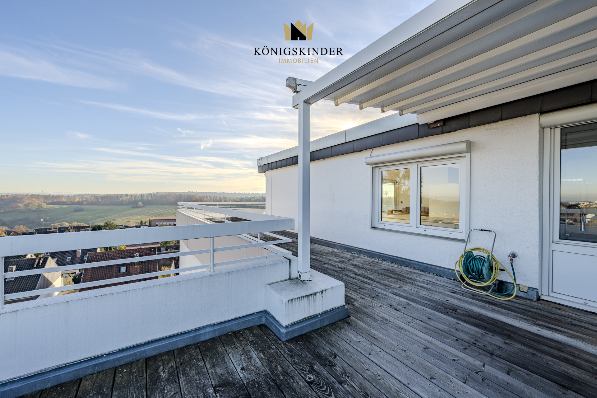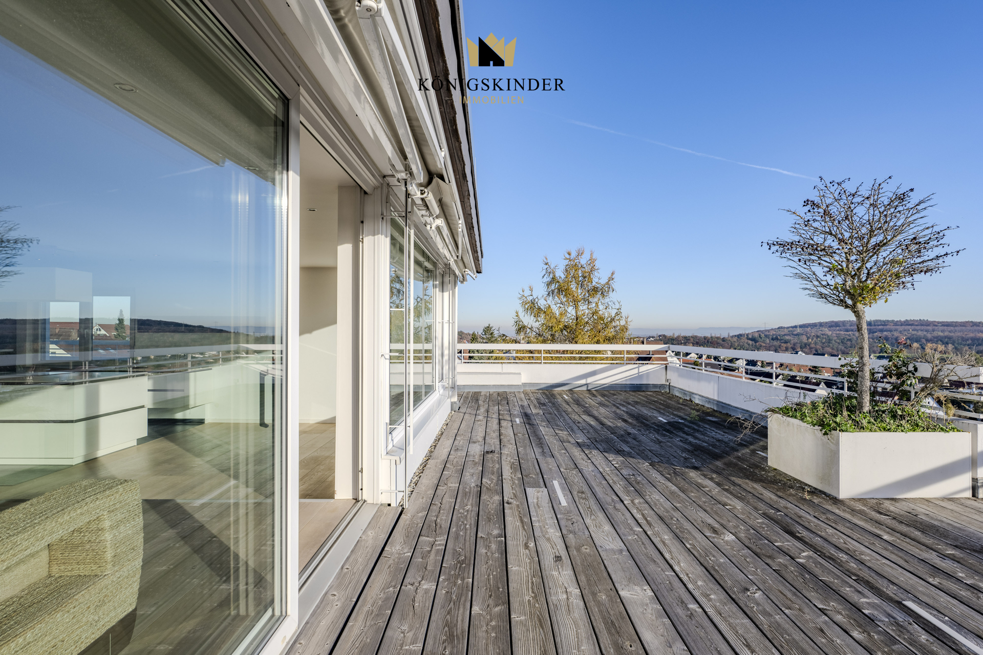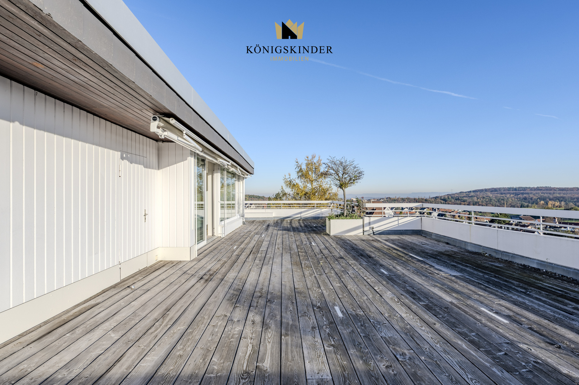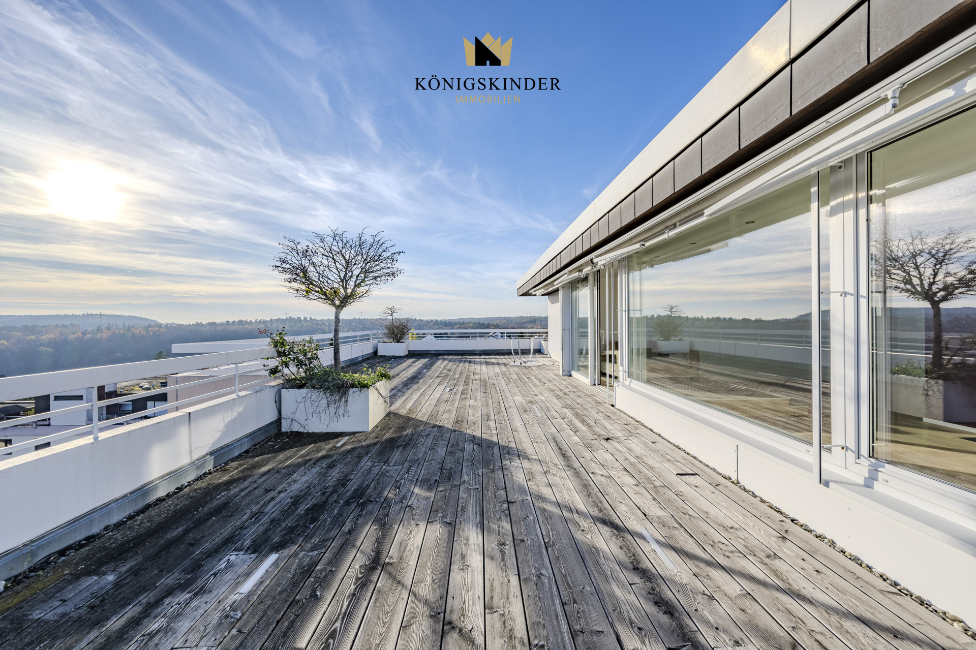 Diese Penthouse-Wohnung in bevorzugter Lage von Musberg ist eine sehr seltene Gelegenheit. Die Wohnung hat eine Wohnfläche von ca. 177 Quadratmeter und verfügt über eine sehr große Dachterrassse mit ca. 180 Quadratmeter. Das Penthouse hat eine sensationelle Panorama-Aussicht mit 180 Grad bis auf die Schwäbische Alb.