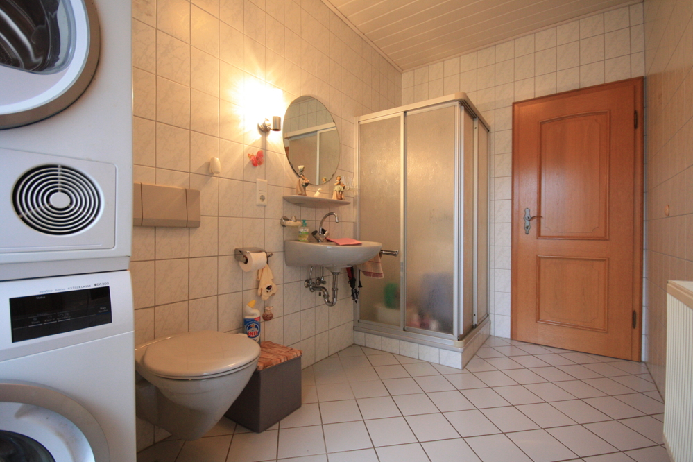 Darüber hinaus verfügt das Haus über einen Hauswirtschaftsraum, der direkt mit der Garage verbunden ist. Von hier aus gelangen Sie bequem ins Haus – praktisch, besonders bei schlechtem Wetter.