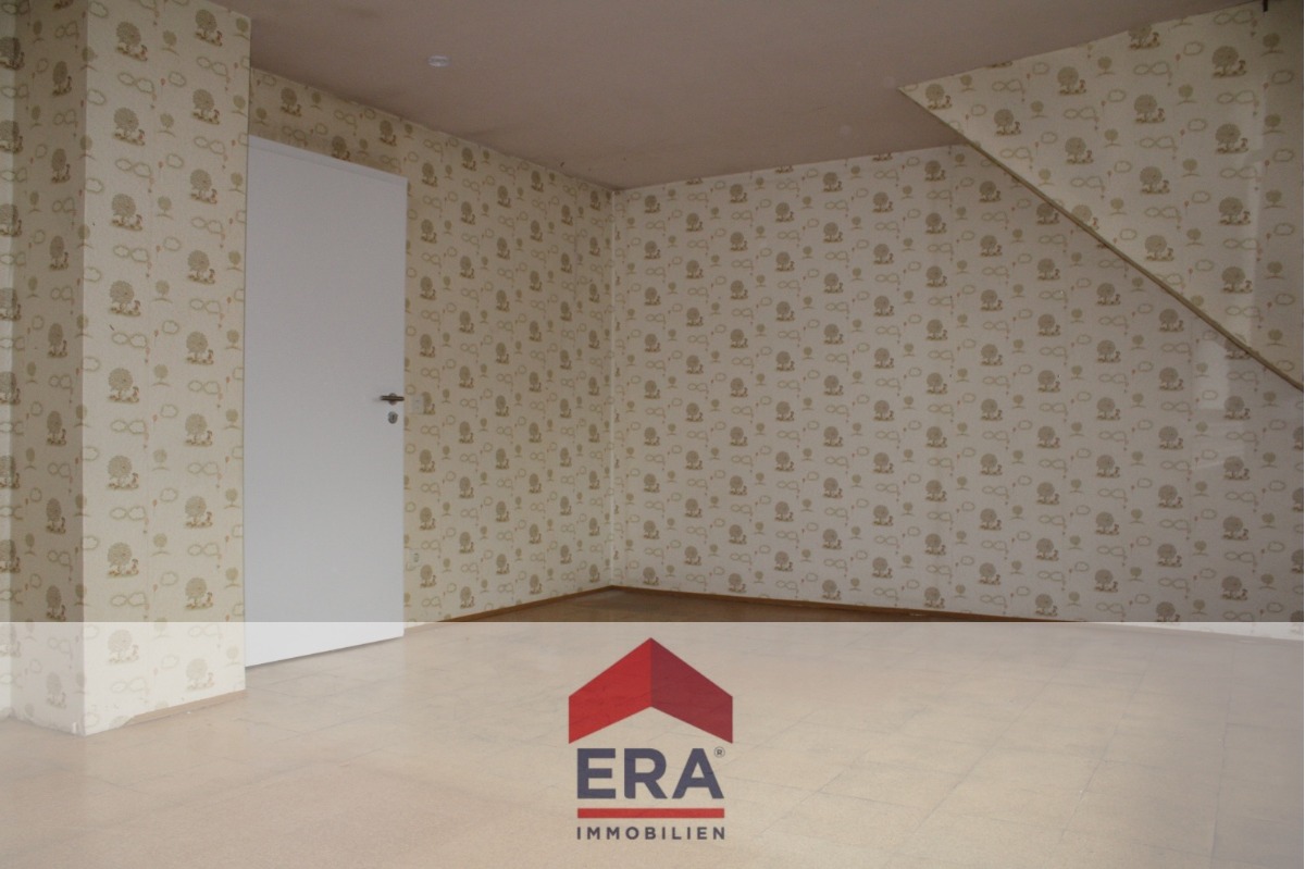 Vom Flur aus öffnet sich der Weg zum großzügigen Wohn- und Essbereich, der durch seine Offenheit und Helligkeit überzeugt. Direkt angrenzend liegt die Küche, die flexibel gestaltet werden kann – hier haben Sie die Möglichkeit, Ihre ganz individuellen Vorstellungen zu verwirklichen. Die große Fensterfront des Wohnbereichs bietet direkten Zugang zum Garten sowie zu einer kleinen, gemütlichen Terrasse, die perfekt für entspannte Stunden im Freien geeignet ist.
