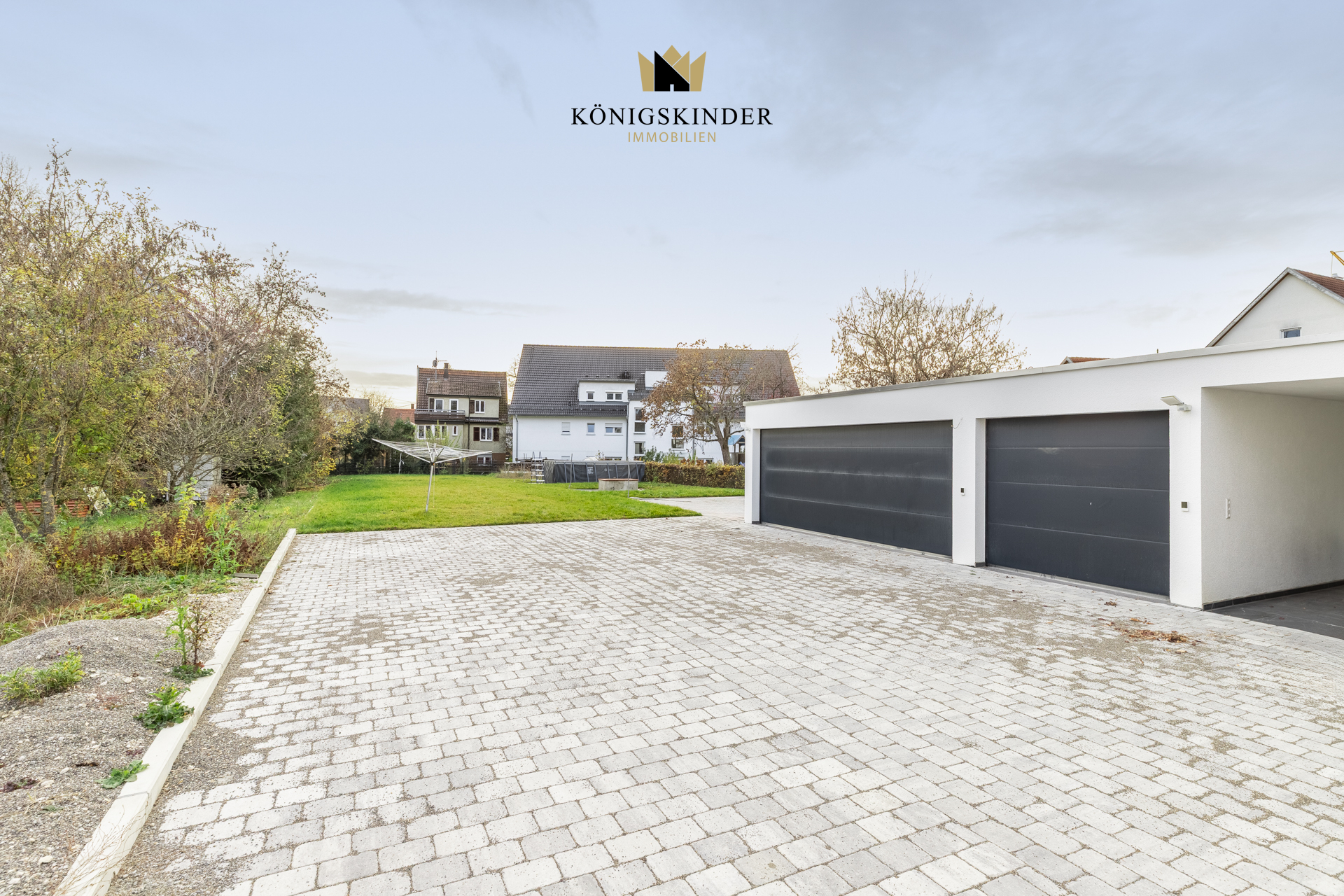Zu den weiteren Highlights zählen die Terrasse, der Balkon und das XL-Gartengrundstück, die viel Freiraum für Erholung, Spiel und Freizeit bieten. Für Fahrzeuge stehen eine Doppelgarage, eine Einzelgarage sowie drei Außenstellplätze zur Verfügung.