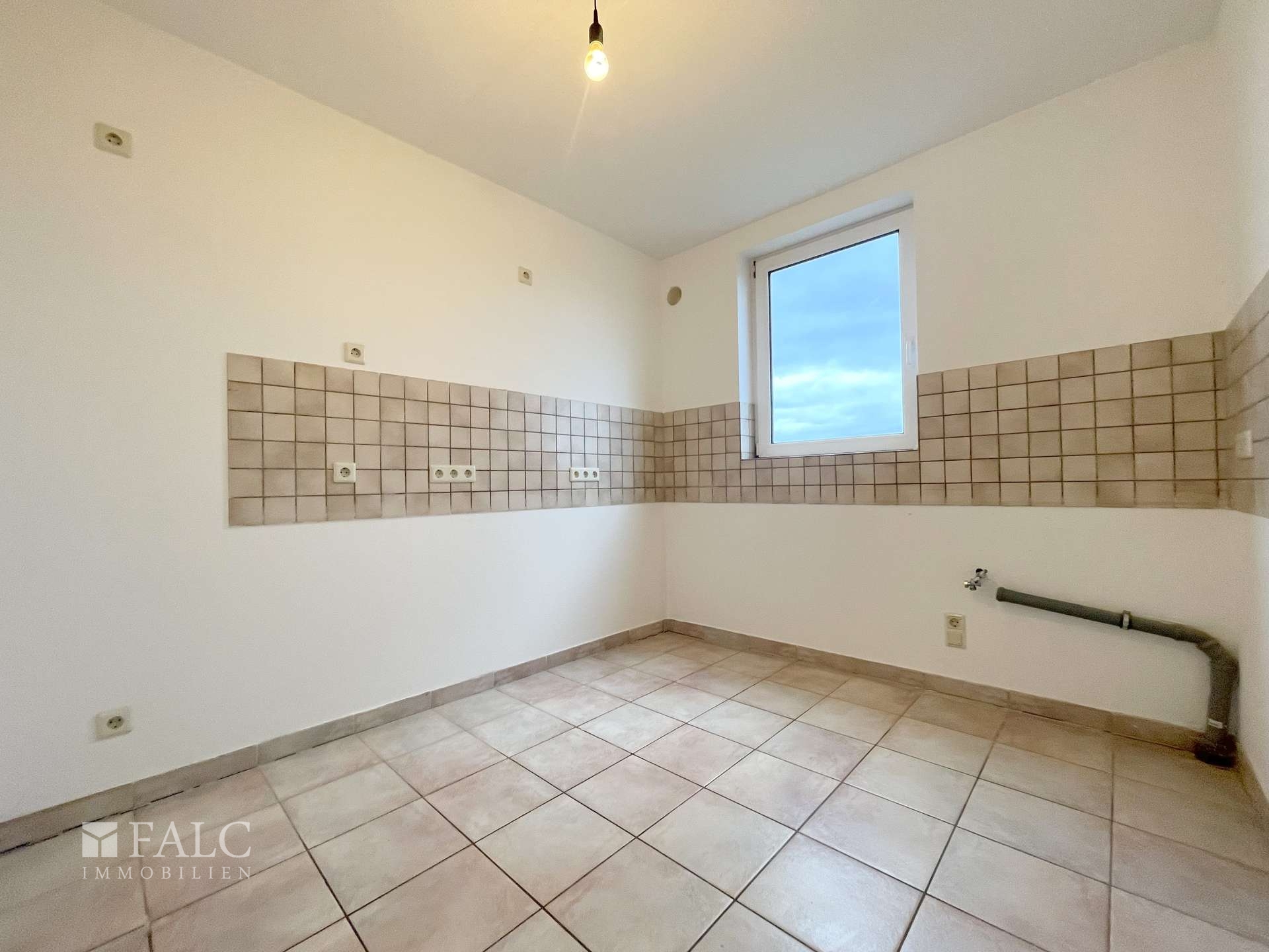 Der helle Wohnbereich beeindruckt mit seiner einladenden Atmosphäre und bietet Zugang zu einem gemütlichen Balkon, der ausreichend Platz zum Entspannen bietet. Die Küche ist funktional geschnitten und kann durch die Nähe zum Wohnbereich ideal in den Alltag integriert werden.