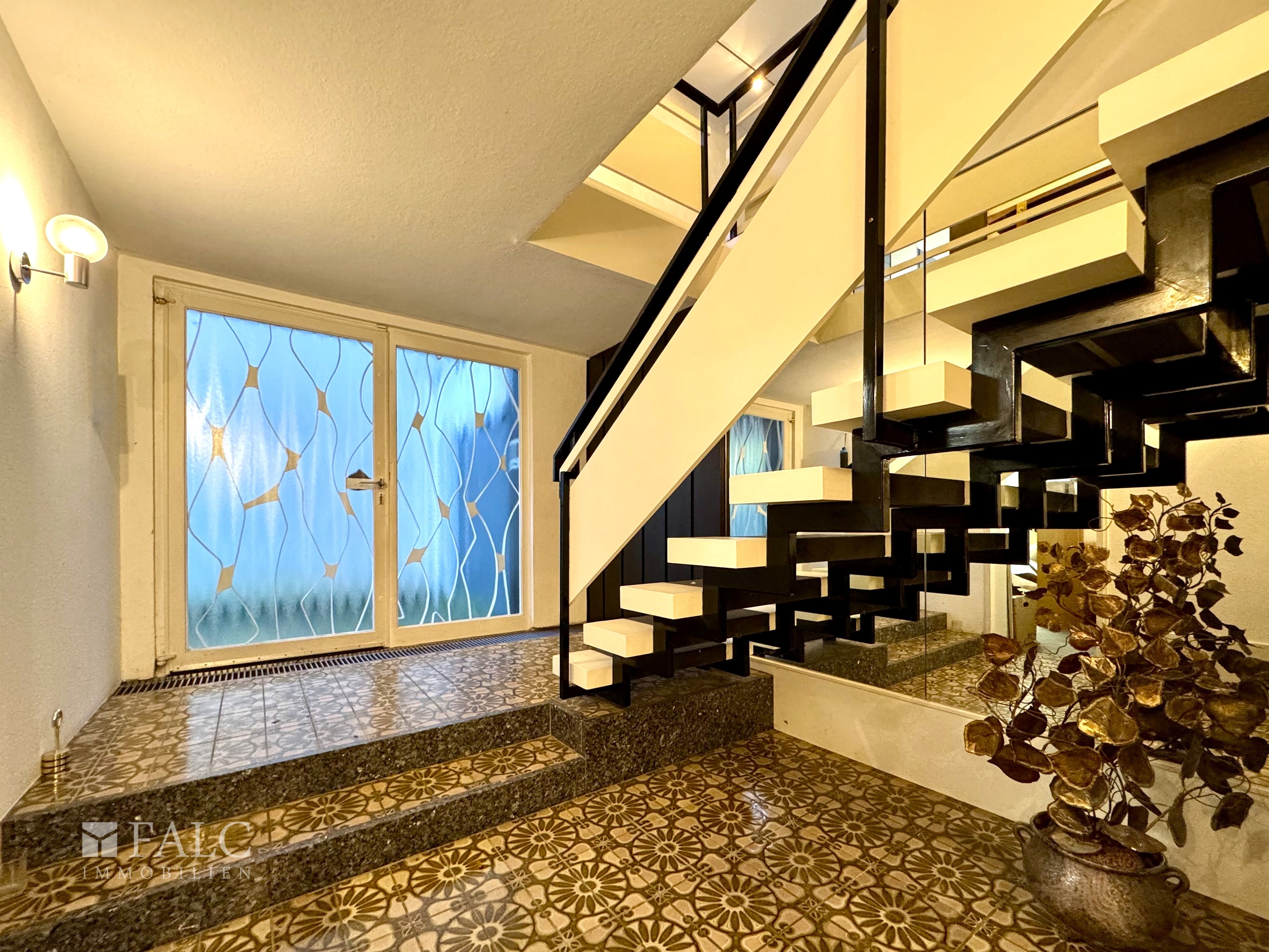Die offene Treppenanlage, die klaren Linien und die großzügigen Raumfolgen zeigen deutlich, welch hochwertiges Wohnkonzept hier bereits in den 1970er Jahren umgesetzt wurde. Die Substanz ist hervorragend, die Weite der Räume außergewöhnlich. Moderne Akzente lassen sich mühelos integrieren, ohne die architektonische Qualität zu zerstören.