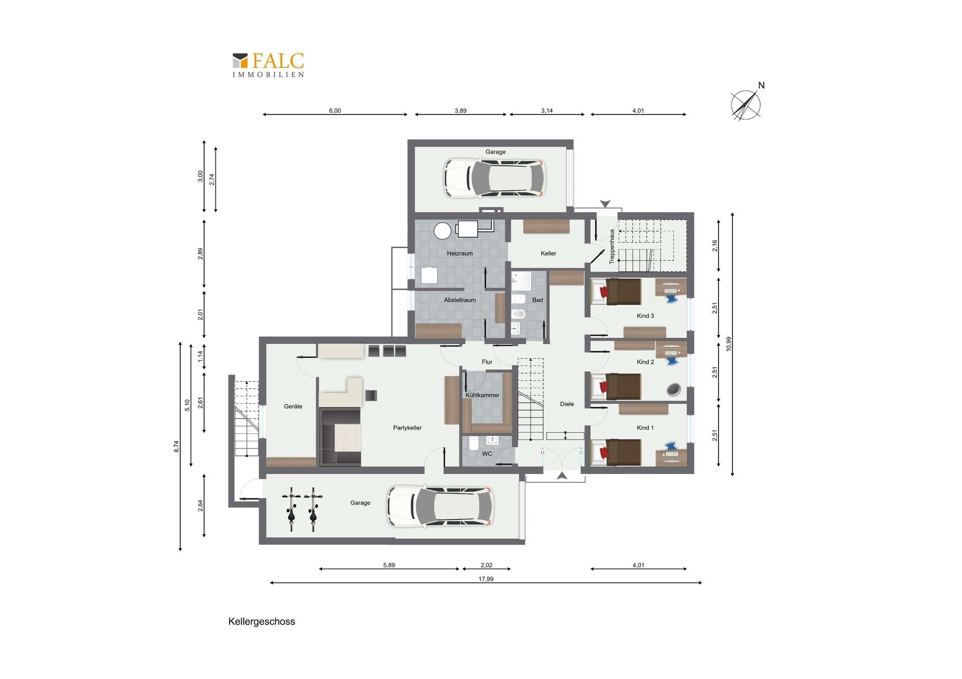Von hier aus gelangen Sie auch in den derzeitigen Partykeller, der optional als großer Hobbyraum, Atelier oder Büro genutzt werden kann. Auch der Zugang zur Garage der Wohnung 1 erfolgt aktuell über diesen Bereich – praktisch, komfortabel und gerade im Alltag mit Kindern ein echter Vorteil.